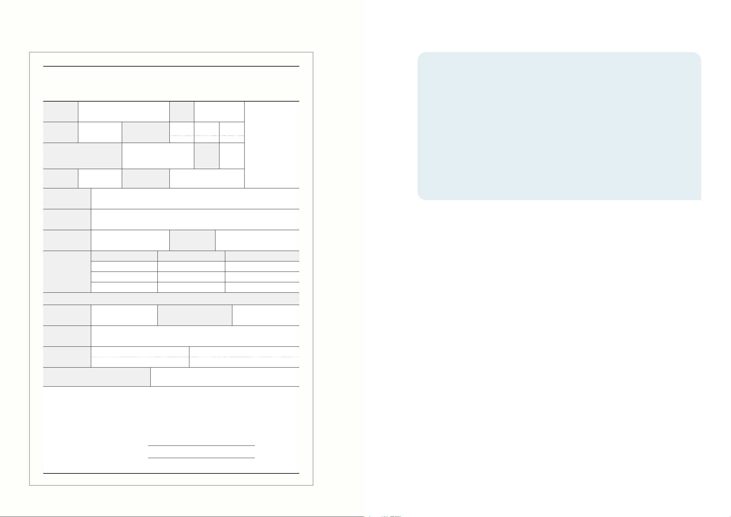 전화번호는 (국가)+(국내지역번호)+(통화가능전화번호) 순서로 기재 Mobile Phone E-mail 주소 Mailing Address