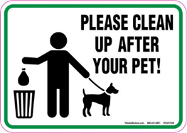 | A. Leave pet waste as it is. B. Clean up any waste your pet leaves behind. C. Cleaning up pet waste is optional. D. Only some pet waste needs to be cleaned.