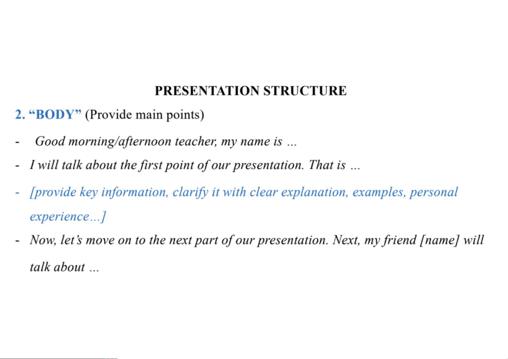 Tell the reader what you’re going to tell them 2. BODY