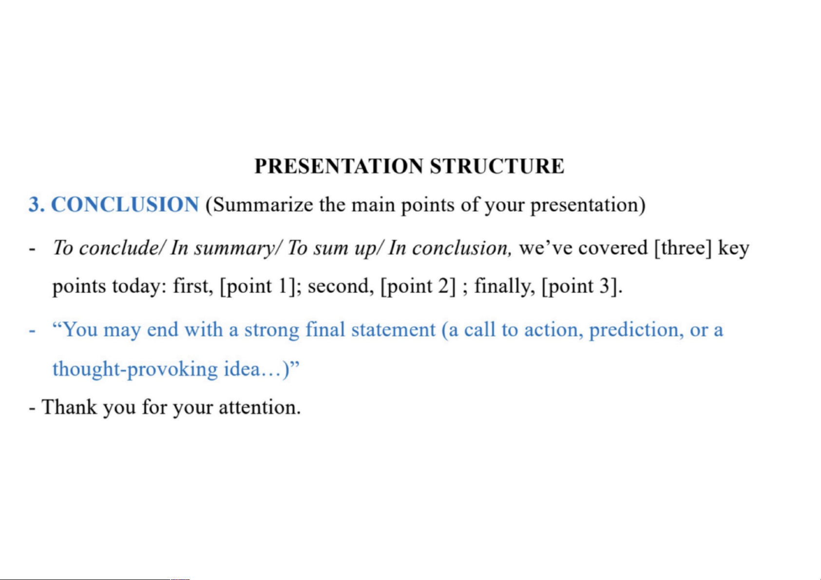 Tell them (with details) 3. CONCLUSION