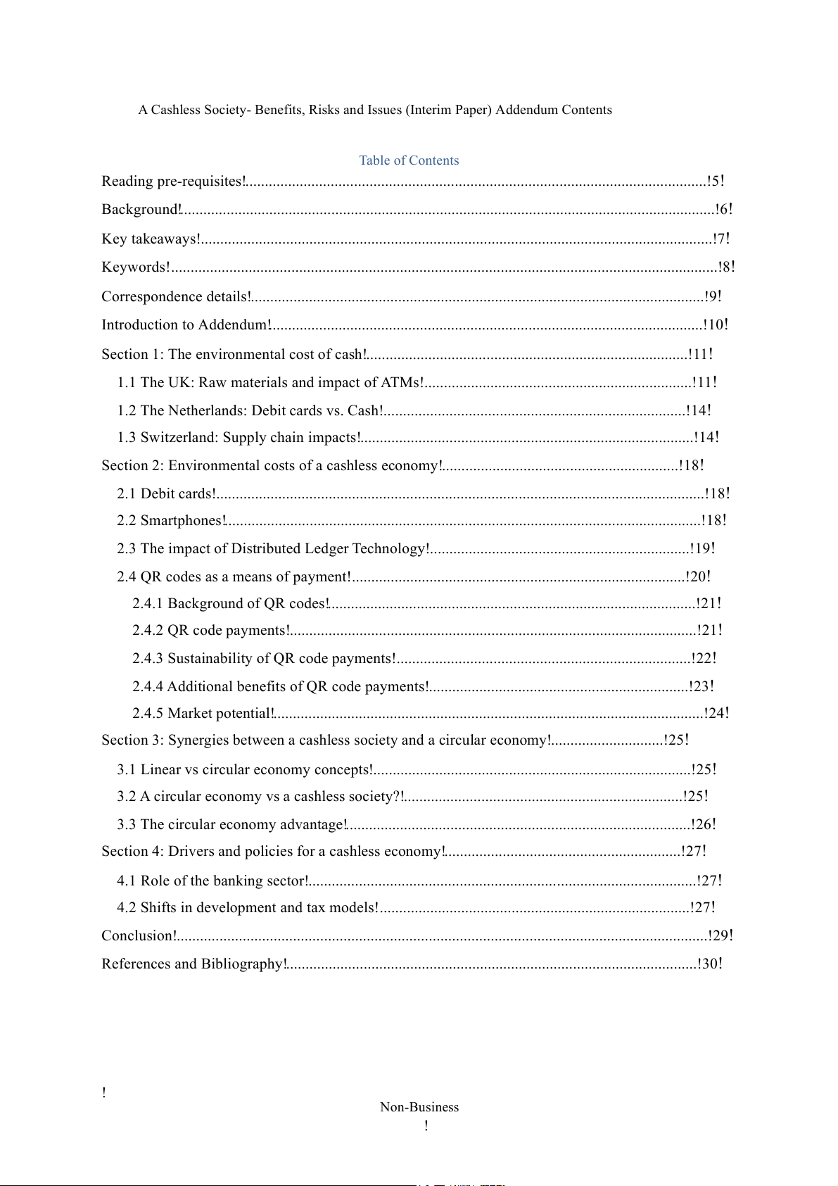 A Cashless Society- Benefits, Risks and Issues (Interim Paper) Addendum Contents Table of Contents