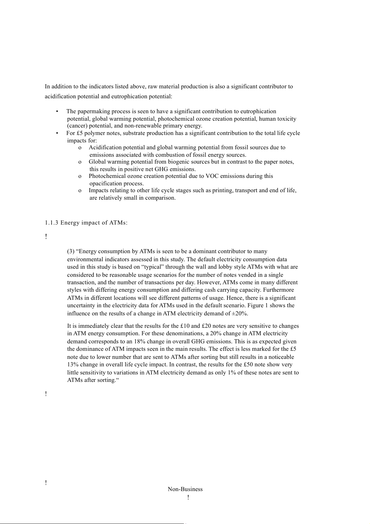 little sensitivity to variations in ATM electricity demand as only 1% of these notes are sent to ATMs after sorting.“ ! ! Non-Business !