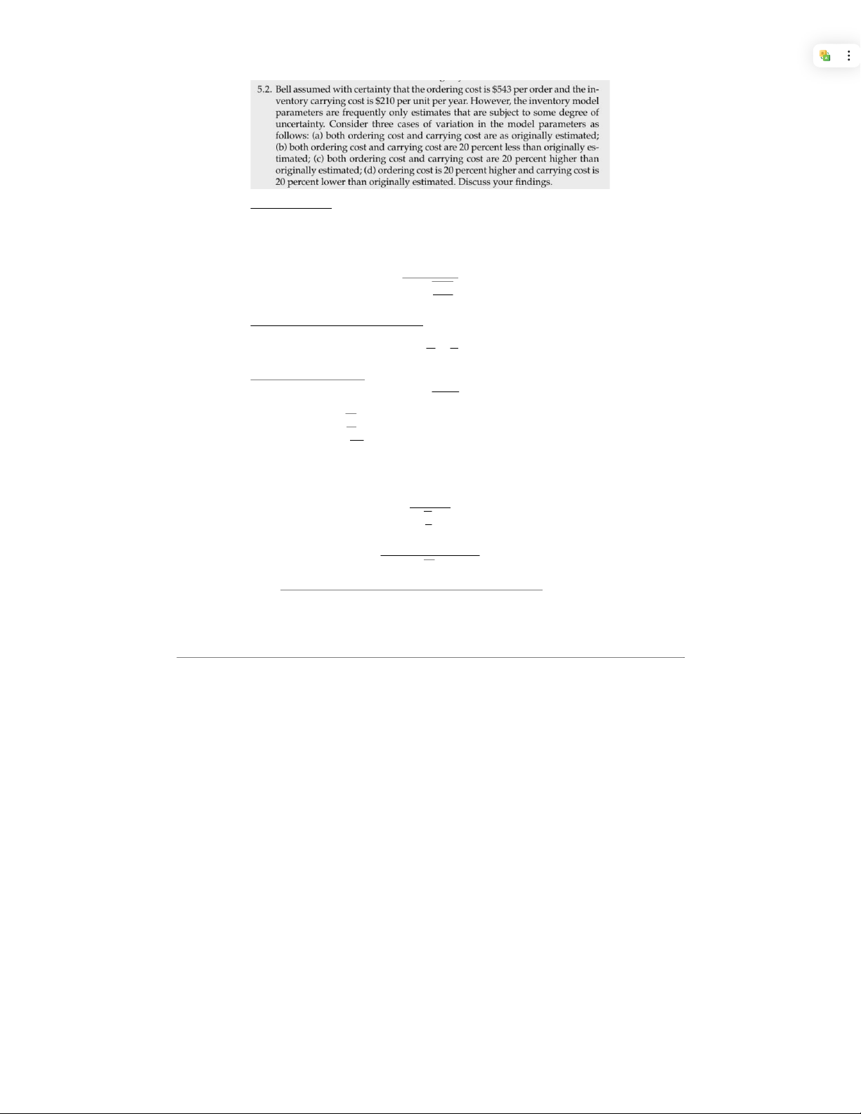ordering cost and carrying cost are 20 percent less than originally estimated S′=0.8S0, H′=0.8H0 Q'= √0.8 0.8×Q∗¿Q∗¿