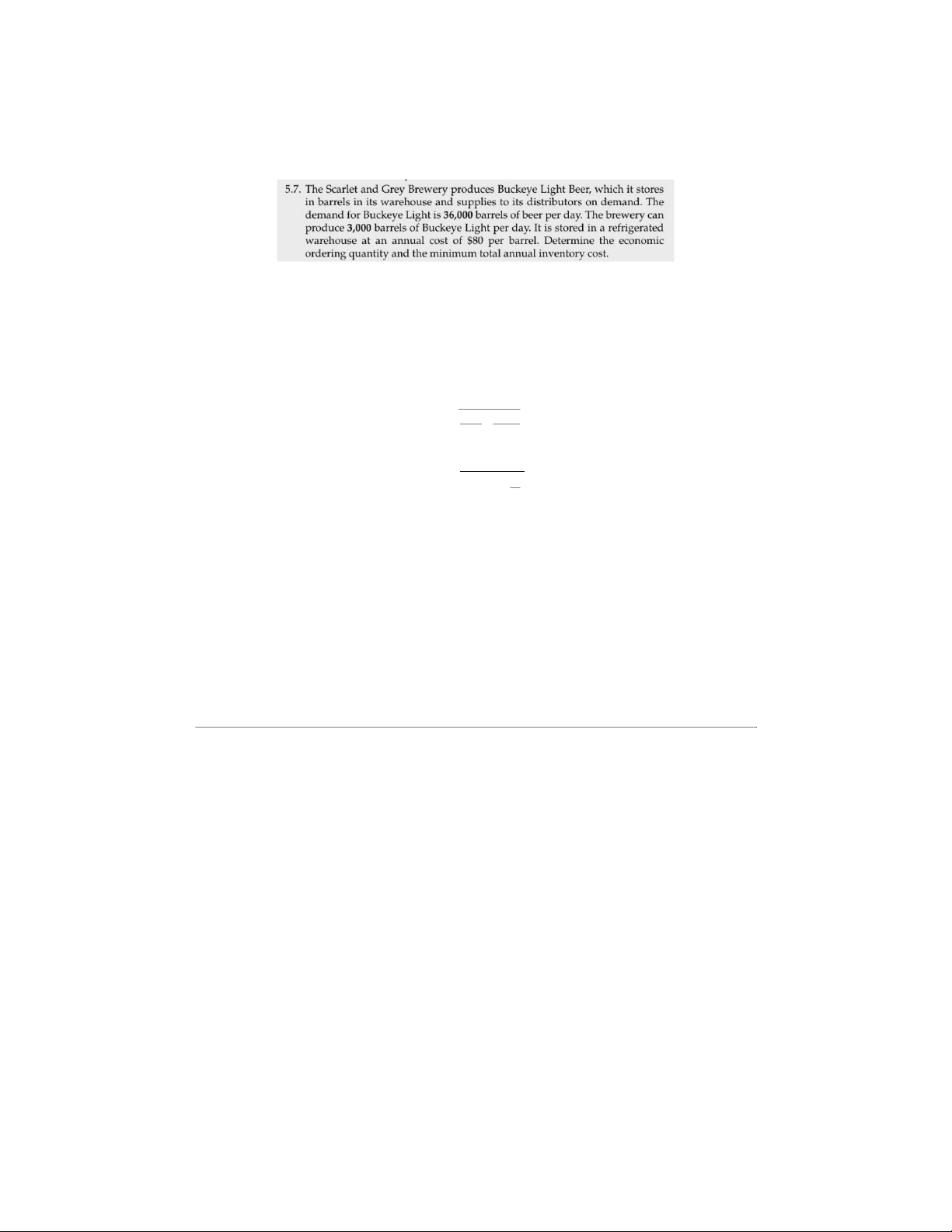 cost outweighs the increase in ordering cost. 5.7 Define parameters: P = annual production D = annual demand H = Holding cost EPQ formulas: