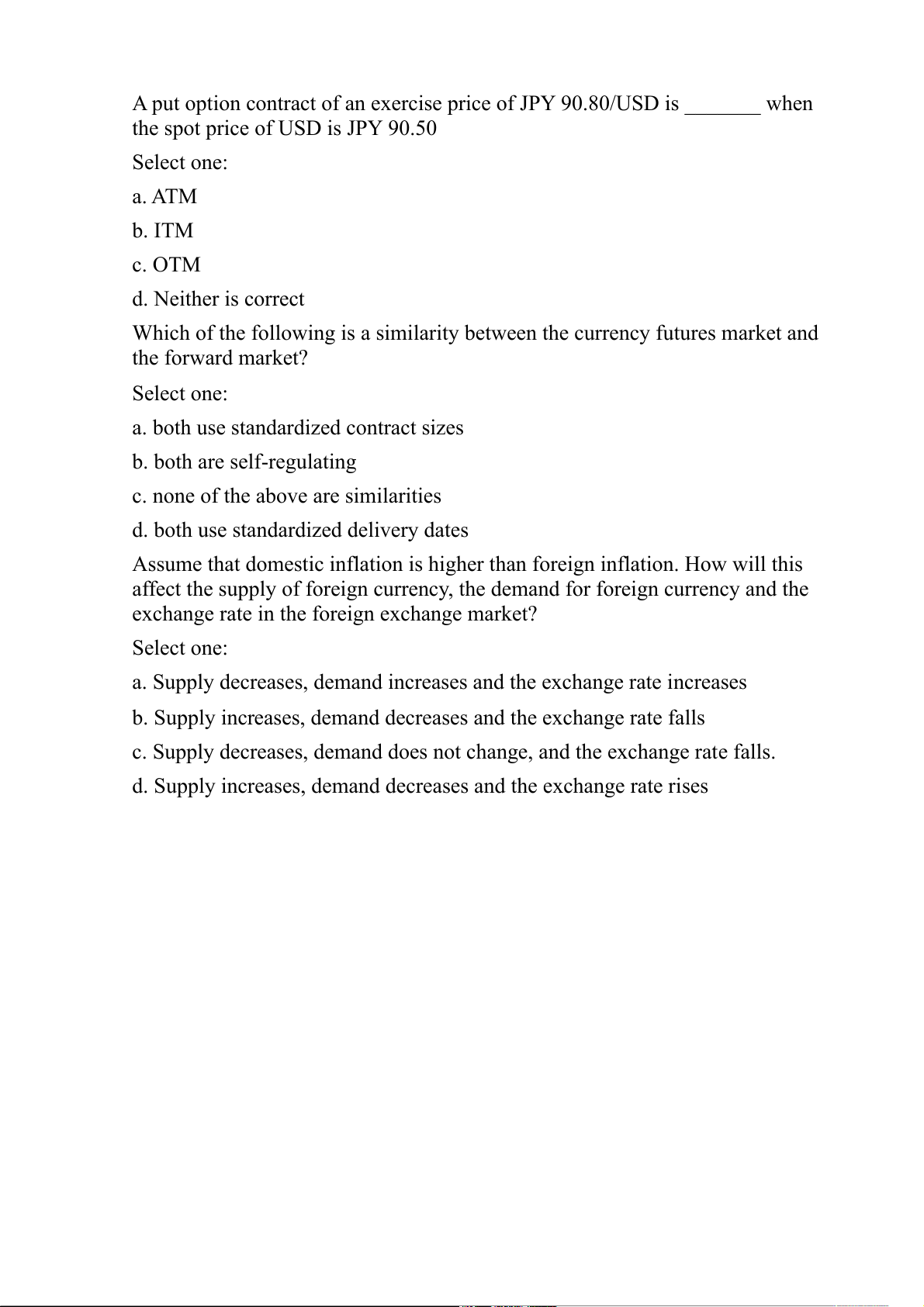 the spot price of USD is JPY 90.50 Select one: a. ATM b. ITM c. OTM d. Neither is correct