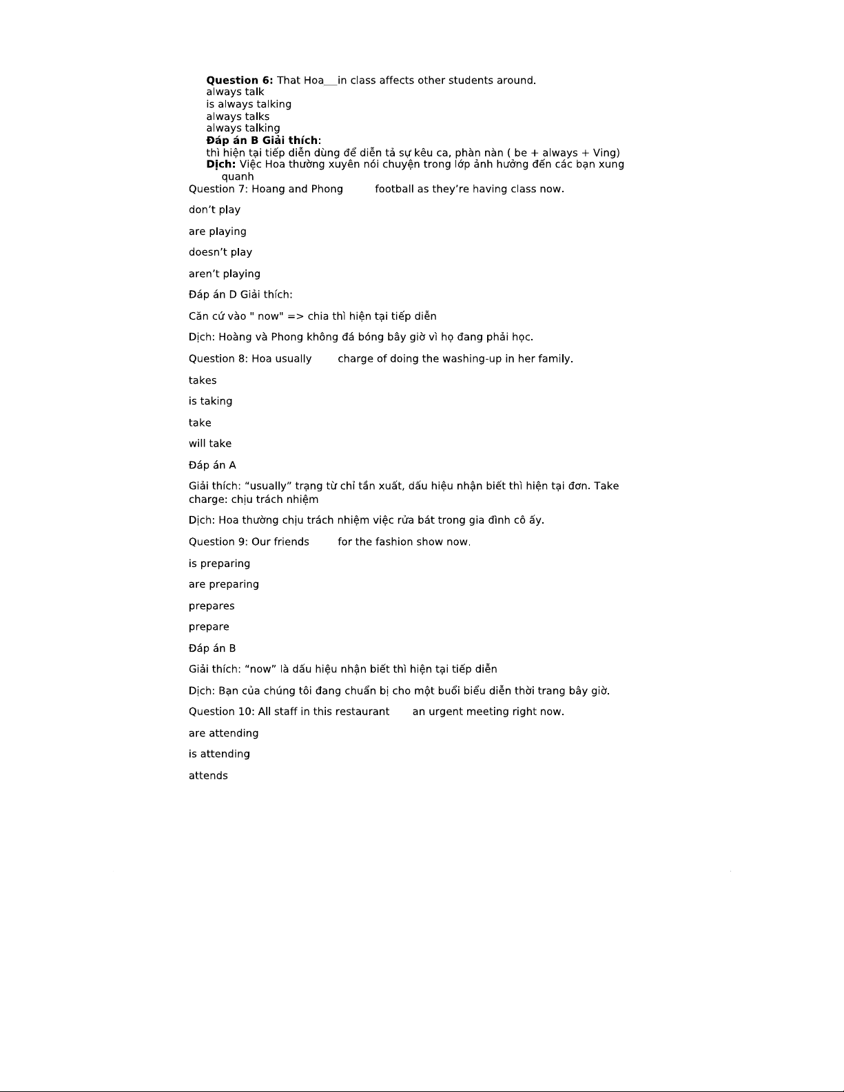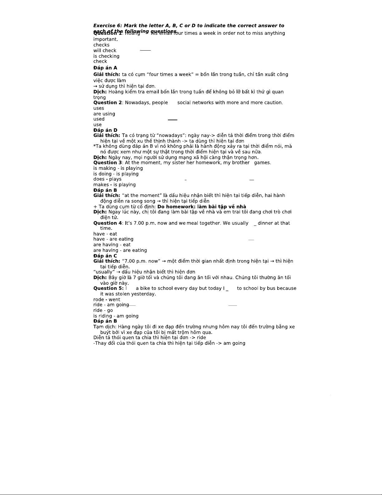 Exercise 6: Tenses of Verb - Answer Key and Explanations