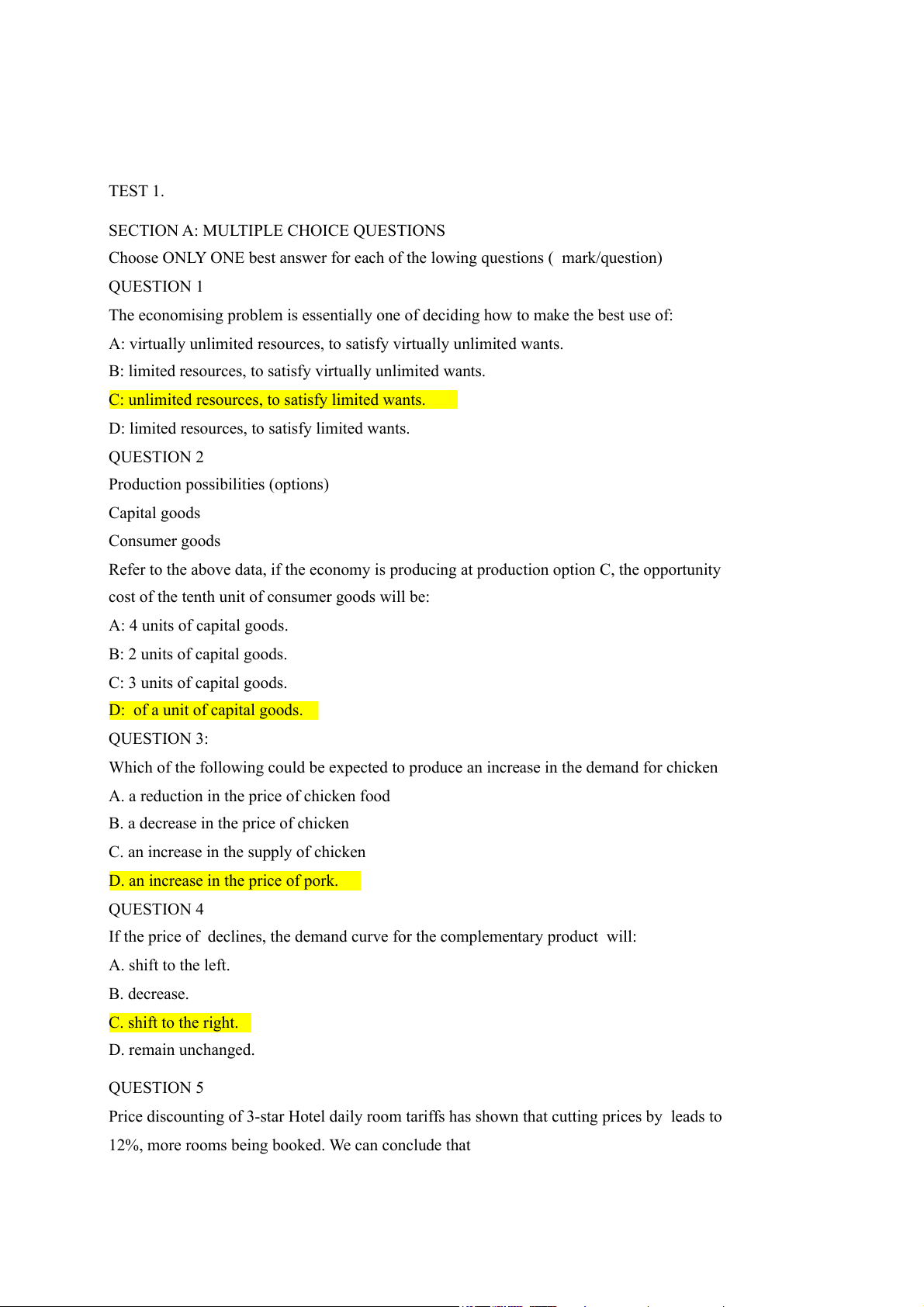 D: limited resources, to satisfy limited wants. QUESTION 2