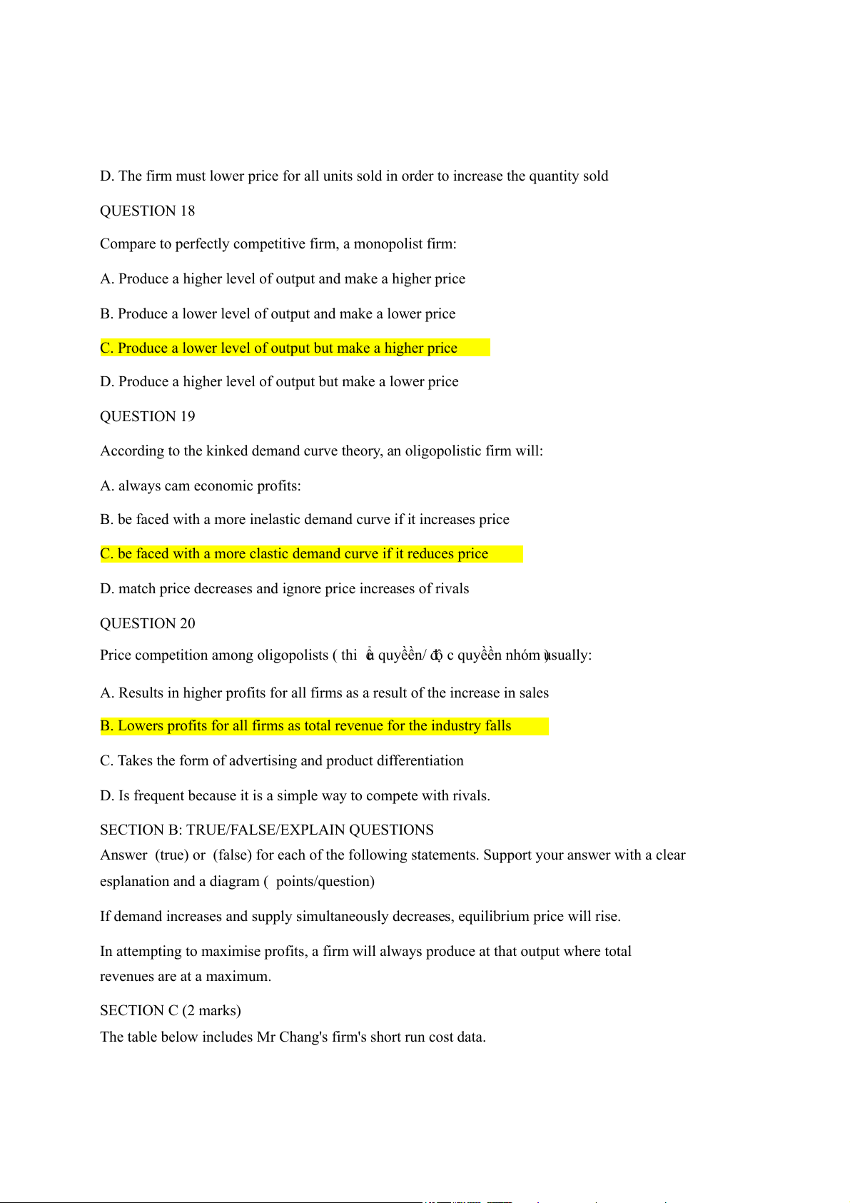 D. Produce a higher level of output but make a lower price QUESTION 19