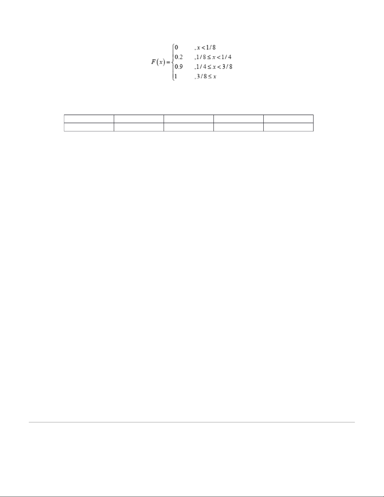 5. A random variable X has the following cumulative distribution function: