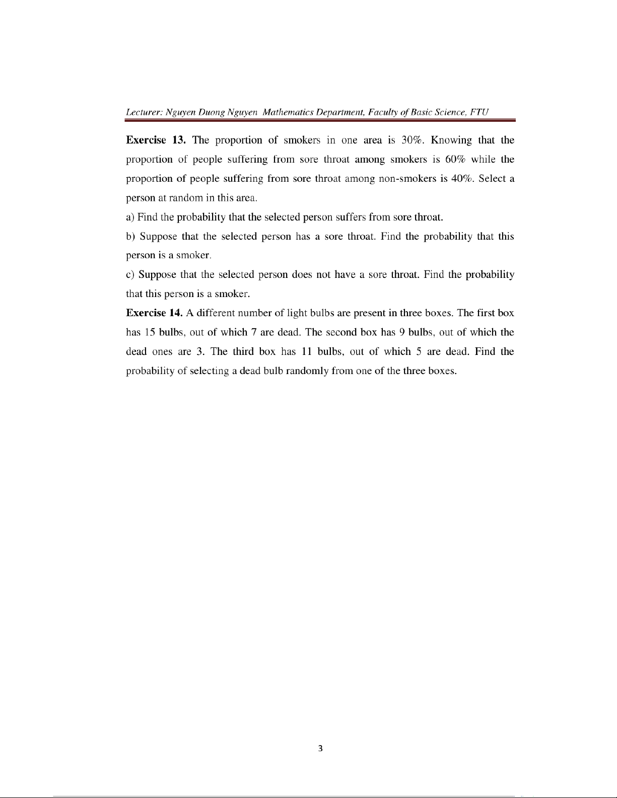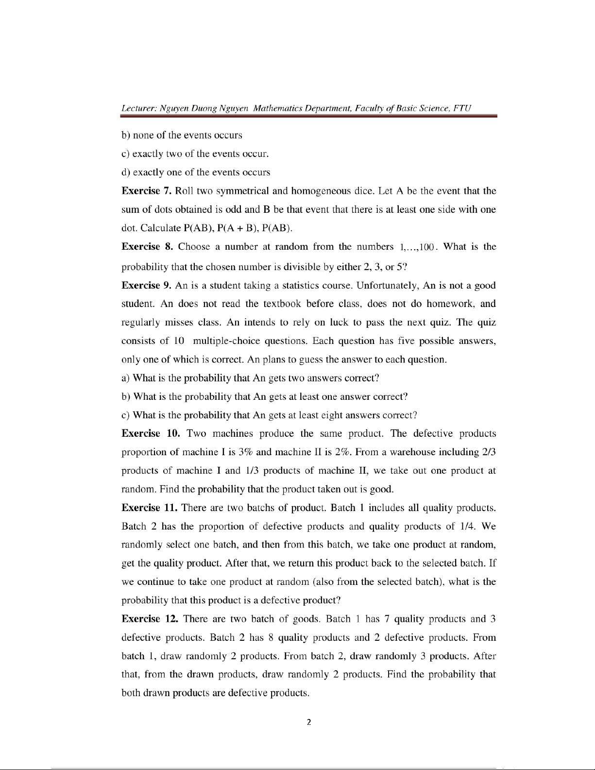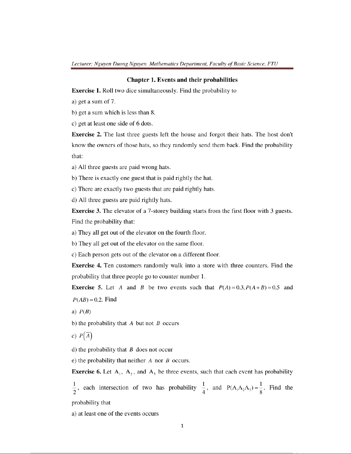 Exercises on Events and Their Probabilities - Chapter 1 môn Xác suất thống kê| Đại học Duy Tân
