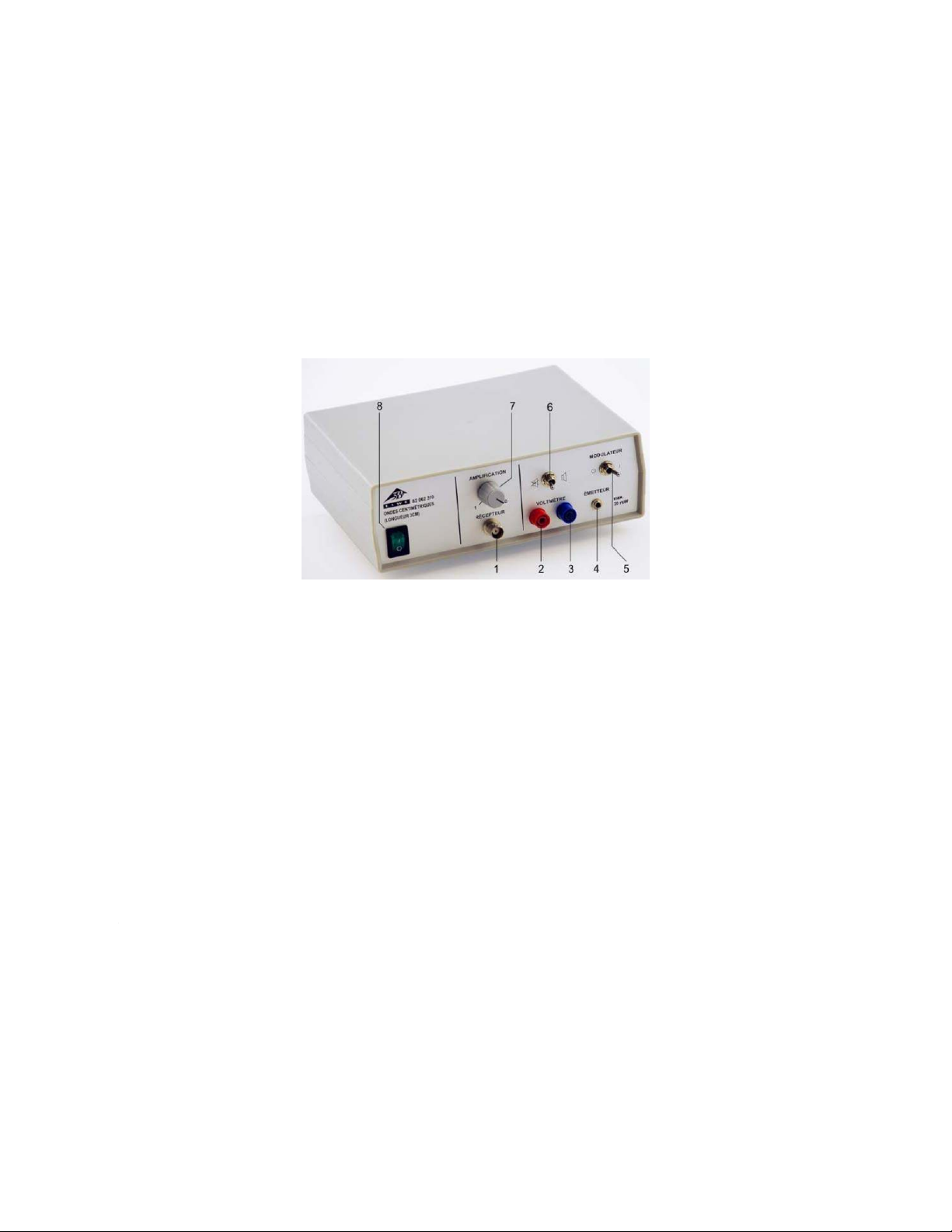 (4) transmitter terminal, (5) modulator switch, (6) speaker switch, (7) amplifier gain