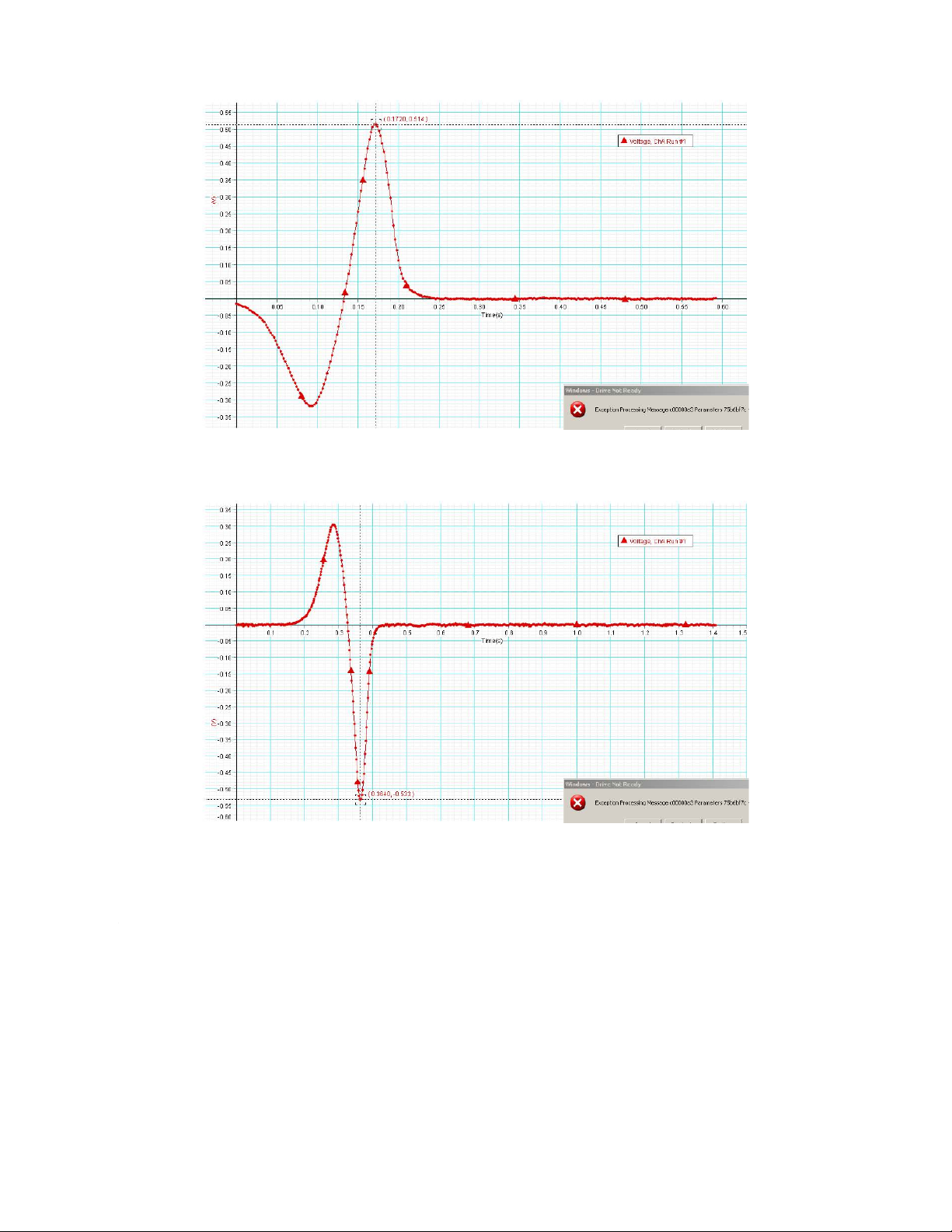 Q1. Why does the value of first voltage peak 1 is smaller than that of the value of voltage peak 2?