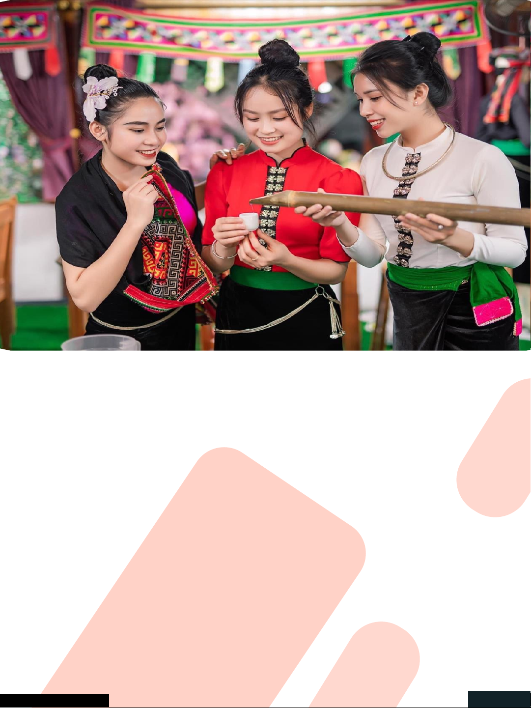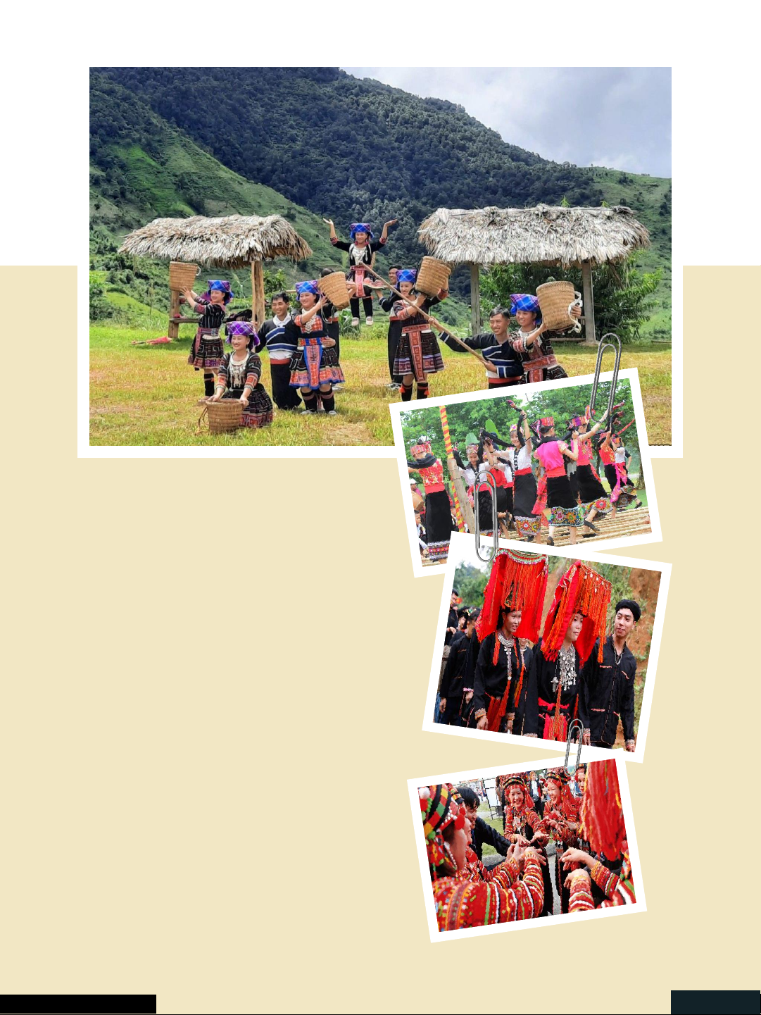 of ban flowers but also preserves the soul of Thai culture, making it a must-experience event in Northwest Vietnam Northwest Vietnam Journal Page 18 Experiences Visitors can engage directly with local culture: wear traditional costumes, dance with locals, taste native dishes, and immerse themselves in music, flutes, and laughter. Participating in the Hoa Ban Festival, Ga Ma Thu Festival or Hmong Independence Festival allows travelers to feel the rhythms of life, community spirit, and harmony with nature. Each experience evokes deep emotions, from excitement and delight to serenity and empathy. Northwest Vietnam Journal Page 19