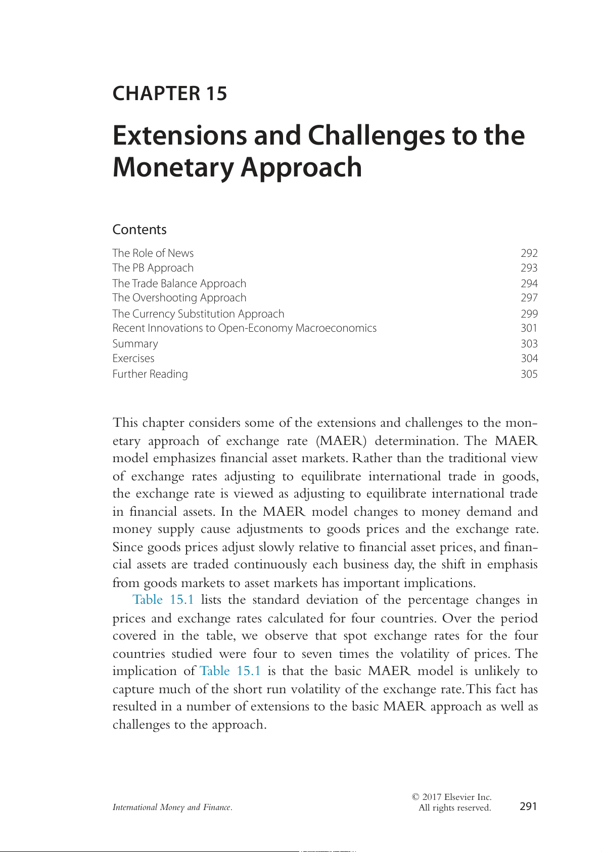 Extensions and Challenges to the Monetary Approach Contents The Role of News 292 The PB Approach 293 The Trade Balance Approach 294 The Overshooting Approach 297