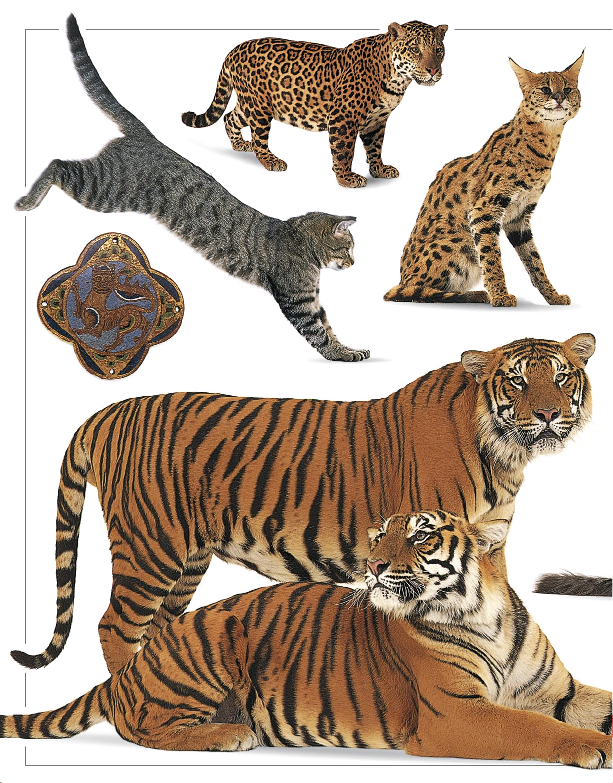 (c) 2011 Dorling Kindersley. All Rights Reserved. Jaguar Serval Plaque showing a crowned lion, Limoges, Tabby cat 12th century Tigers
