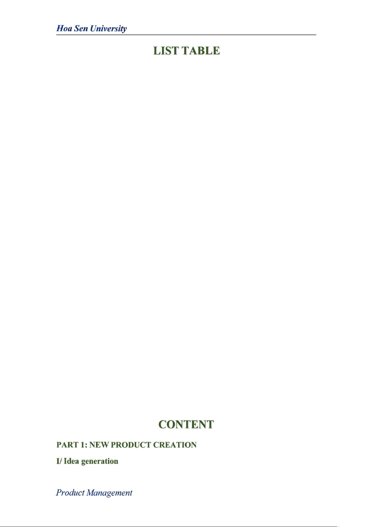 PART 1: NEW PRODUCT CREATION.........................................................1 I/ Idea