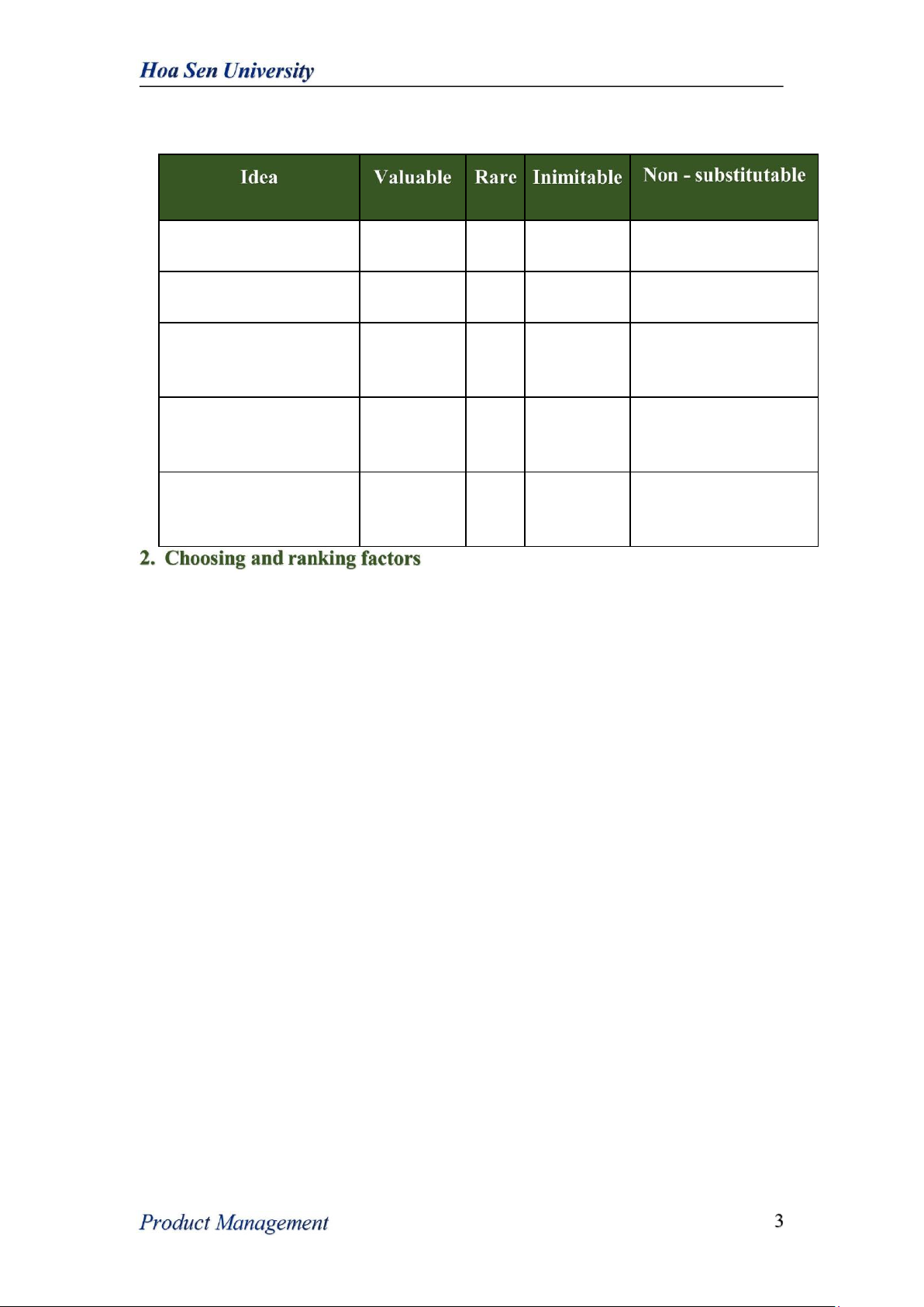 Mark Rank Mark Rank Mark Items Ratio Meet 25 4 75 4 80 5 100 demand lOMoAR cPSD| 47206071 Differences 25 4 100 5 80 3 50 Price 20 4 80 3 75 3 70 Convenience 15 5 80 4 70 4 90 Satisfied 15 5 100 3 80 5 60 Total 100 435 385 370
