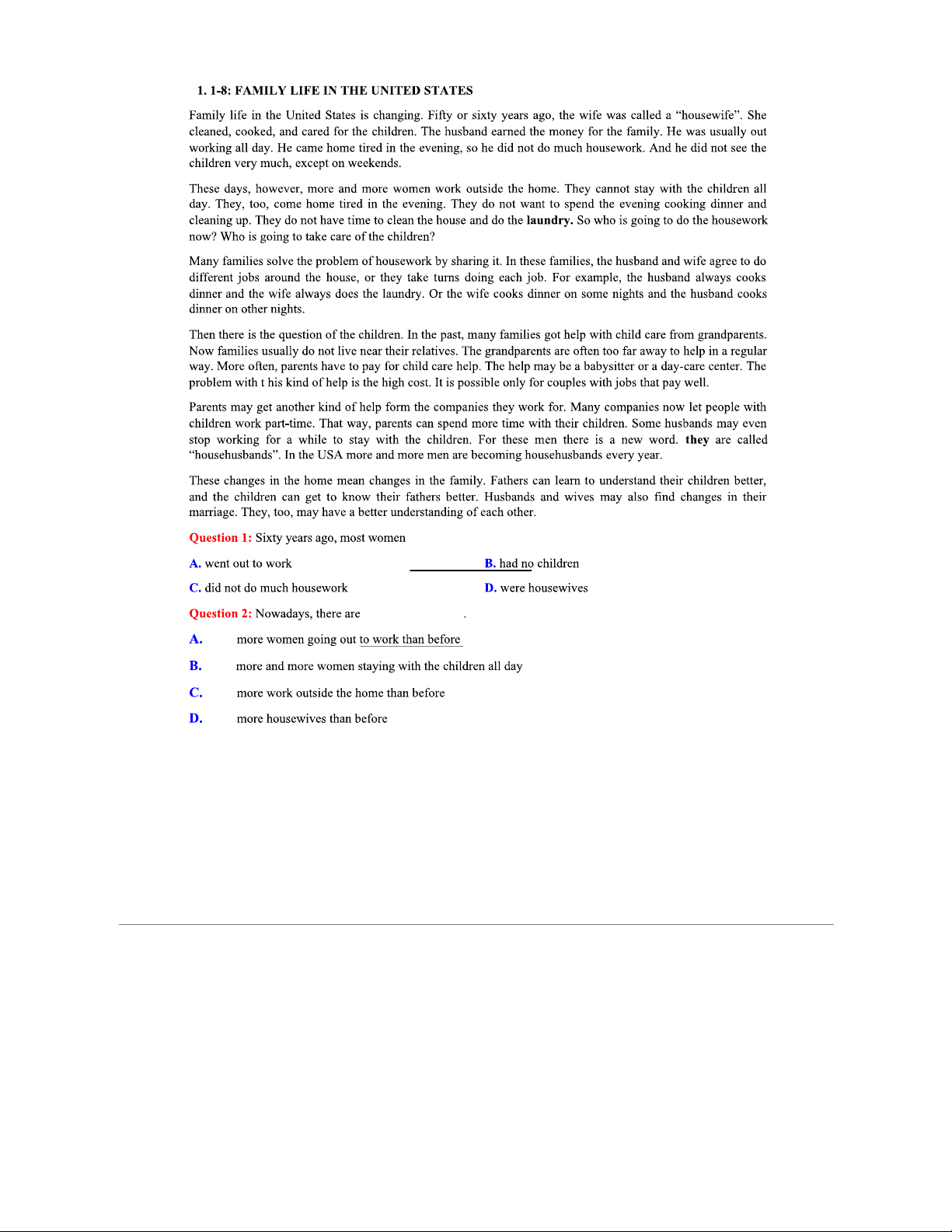 FAMILY LIFE IN THE U.S.: CHANGES AND CHALLENGES (ENG 101)