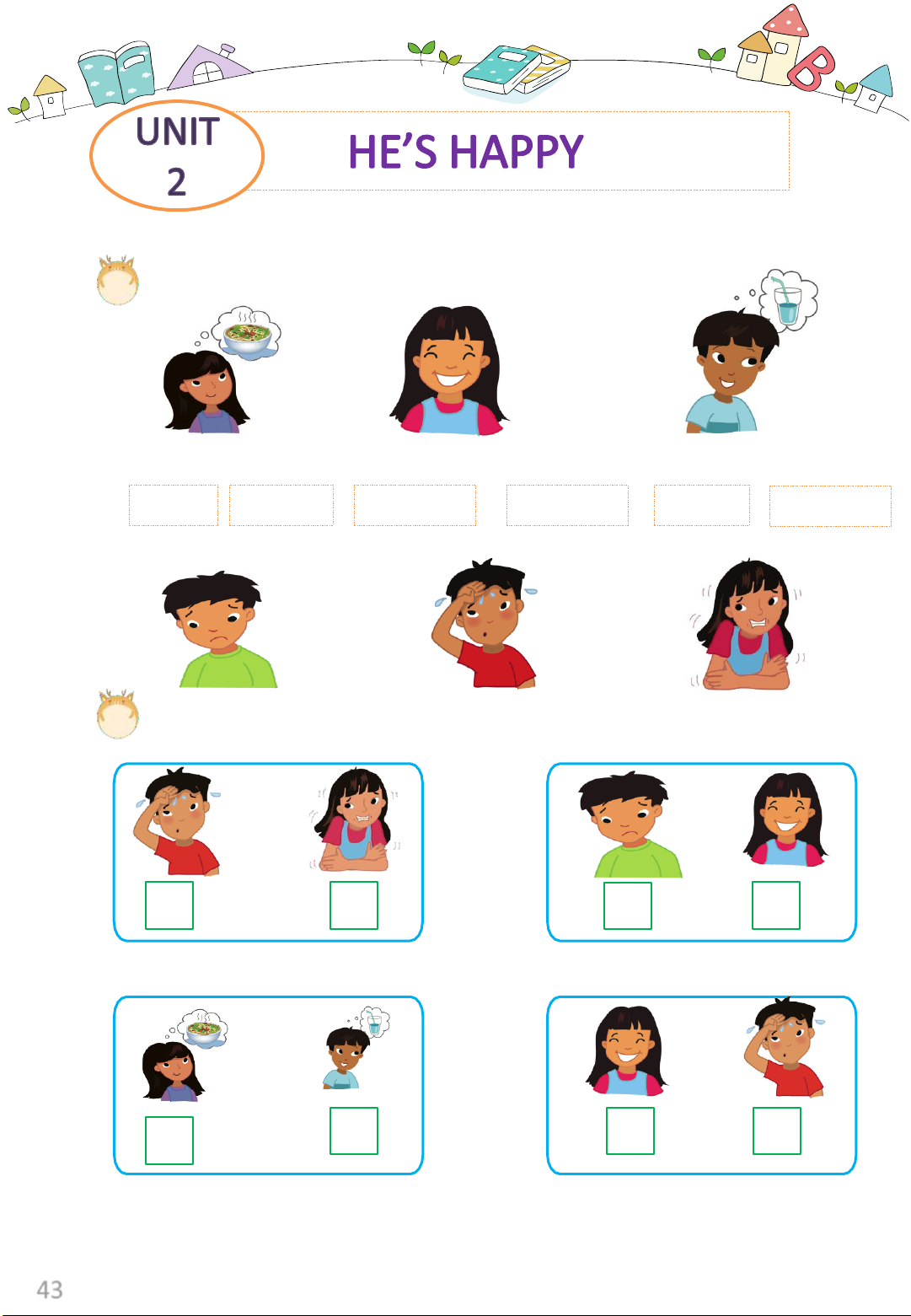 LESSON 1 Words Exercise 1: Look and match. hot cold happy hungry sad thirsty Exercise 2: Listen and tick. 43
