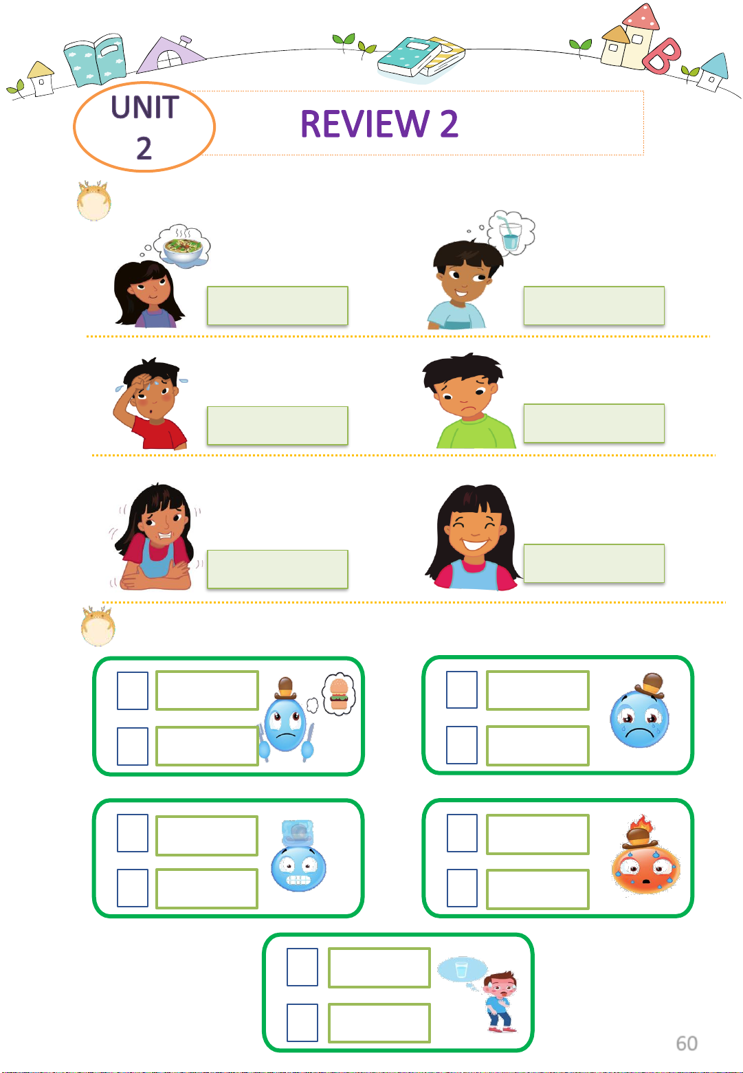 Exercise 2: Listen and tick or cross. hungry sad hot cold thirsty hot cold happy happy thirsty 60 Exercise 3: Listen and number.