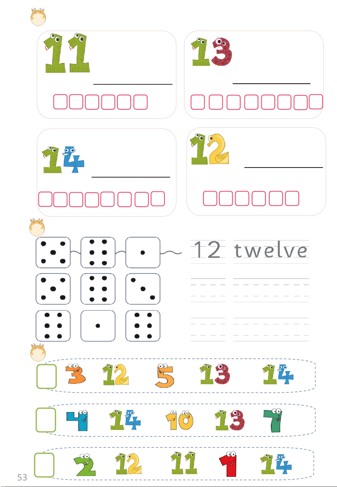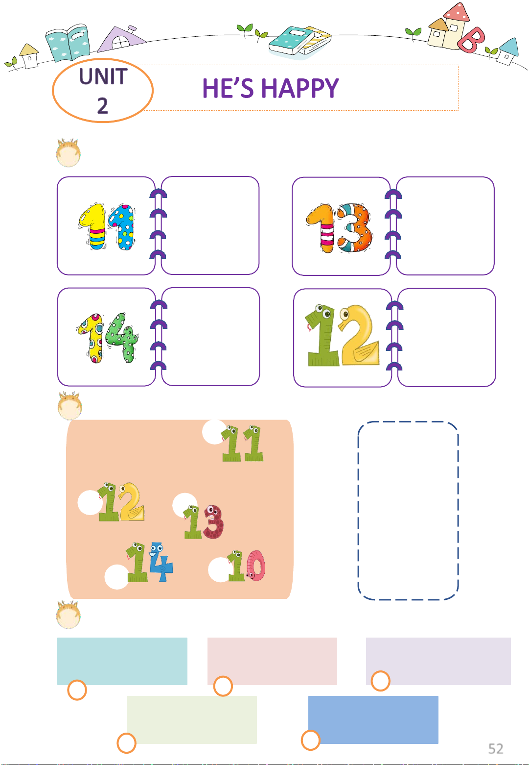 Exercise 3: Listen and circle. ten / fourteen eleven / fourteen thirteen / fourteen 1 2 3 eight / fourteen twelve / fourteen 4 5 52