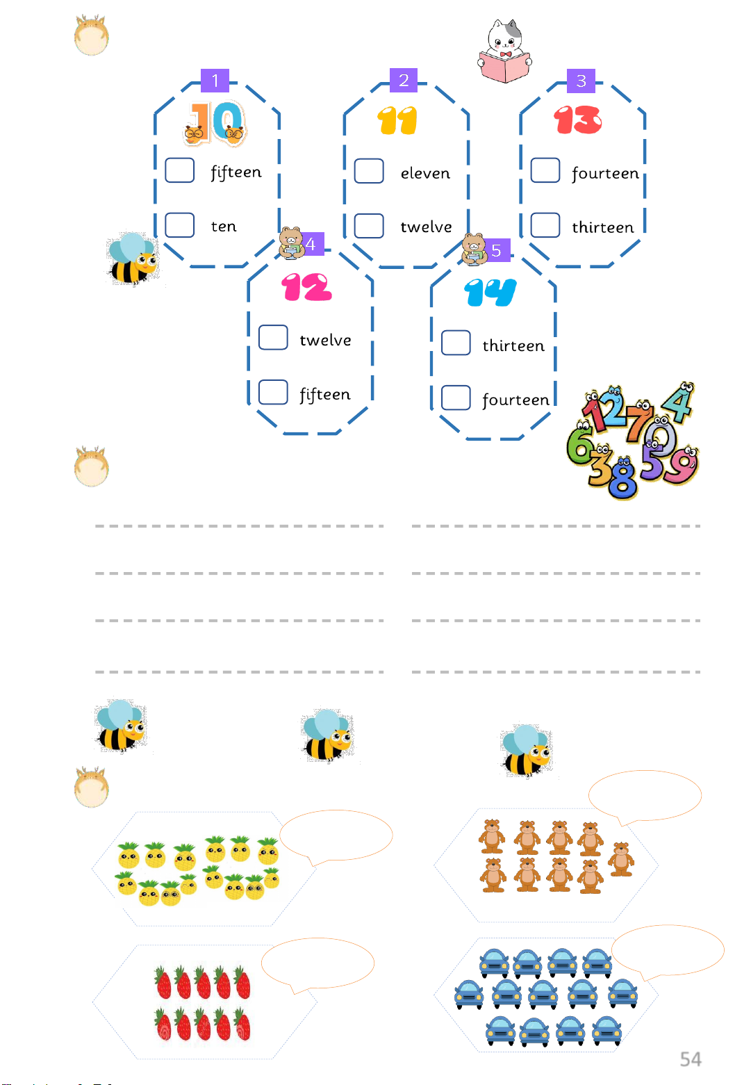 Exercise 2: Look, read and number the pictures 1. Eleven 2. Twelve 3. Fourteen 4. Thirteen 5. Ten