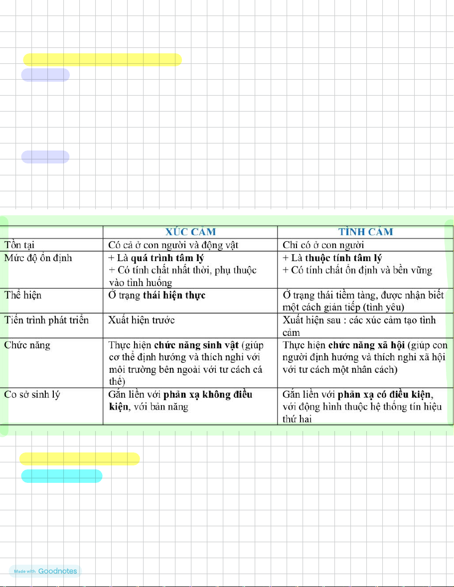 1.Phân biệt xúc cảm và tình cảm :