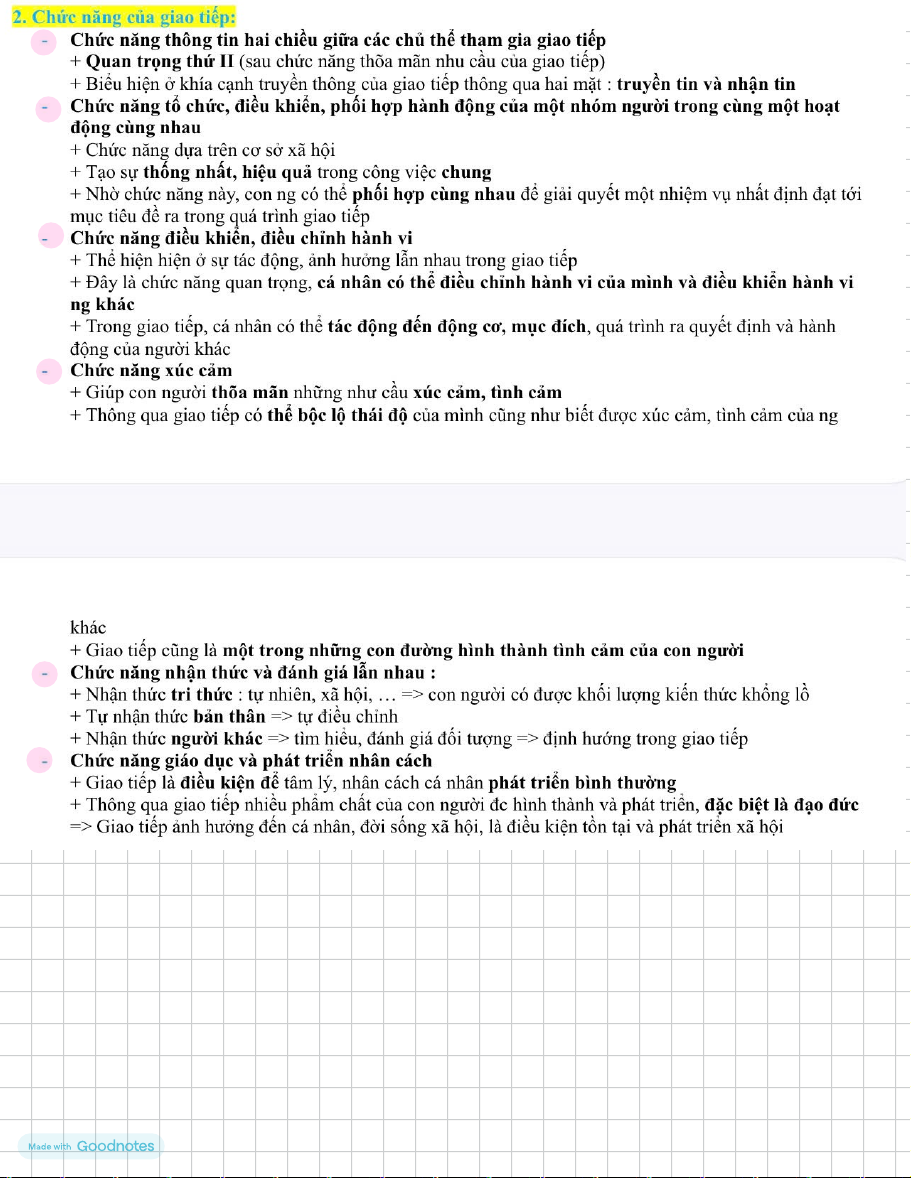 ảnh hưởng lẫn nhau mà trong đó là giao tiếp xác lập và vận hành các mối qh. 6. Chức năng giao tiếp. :