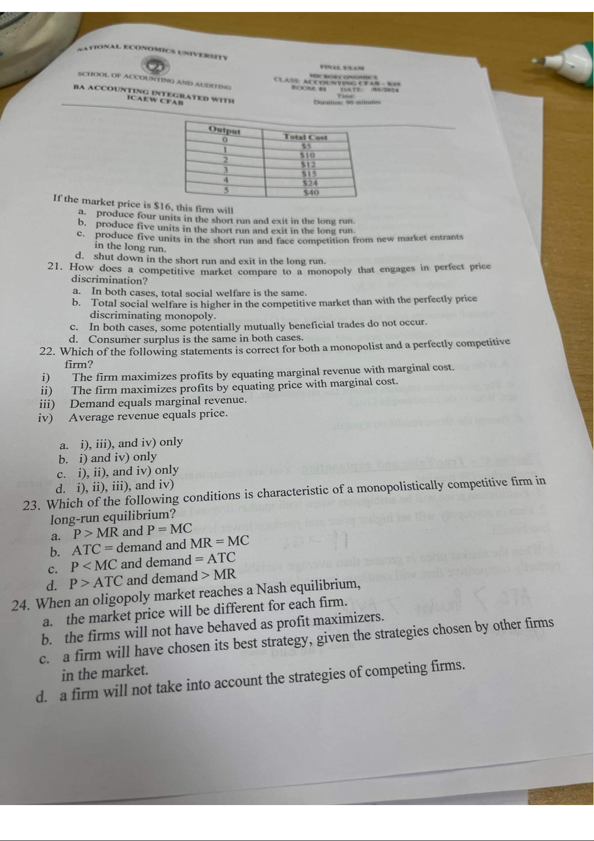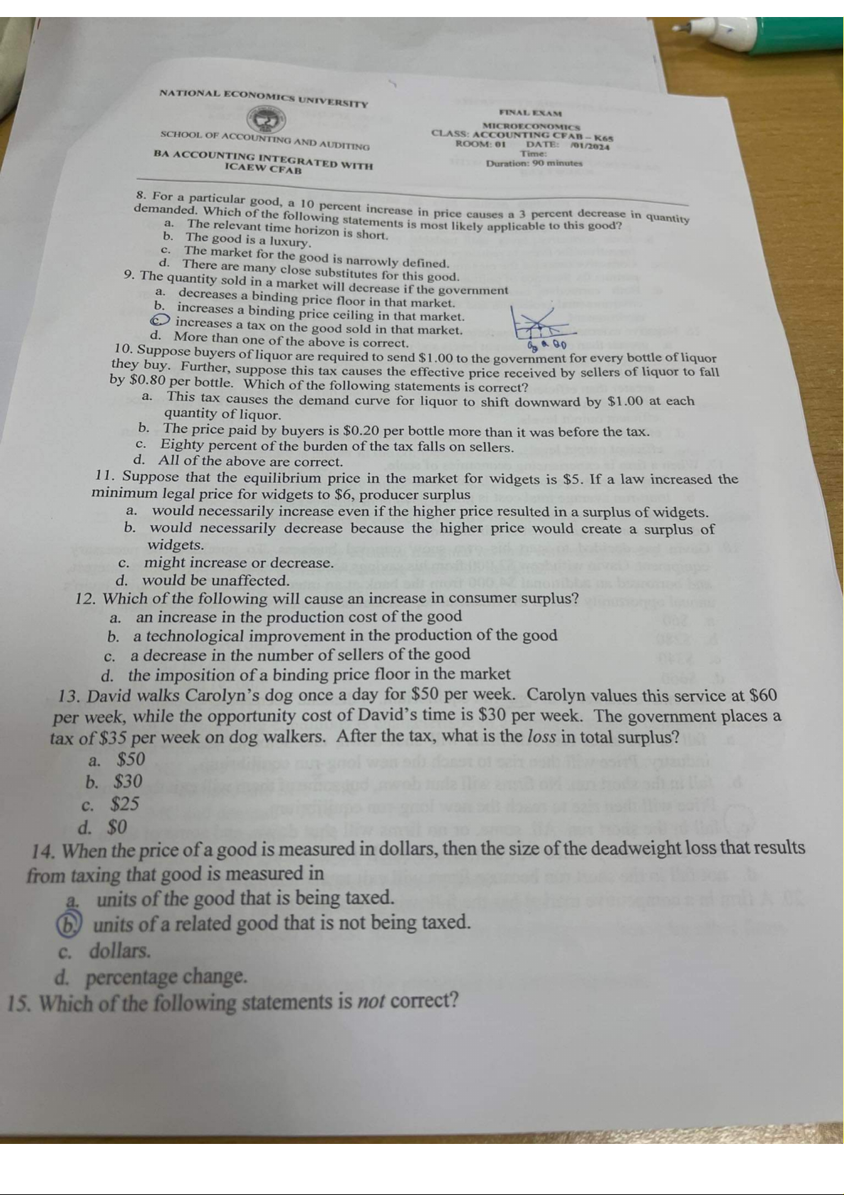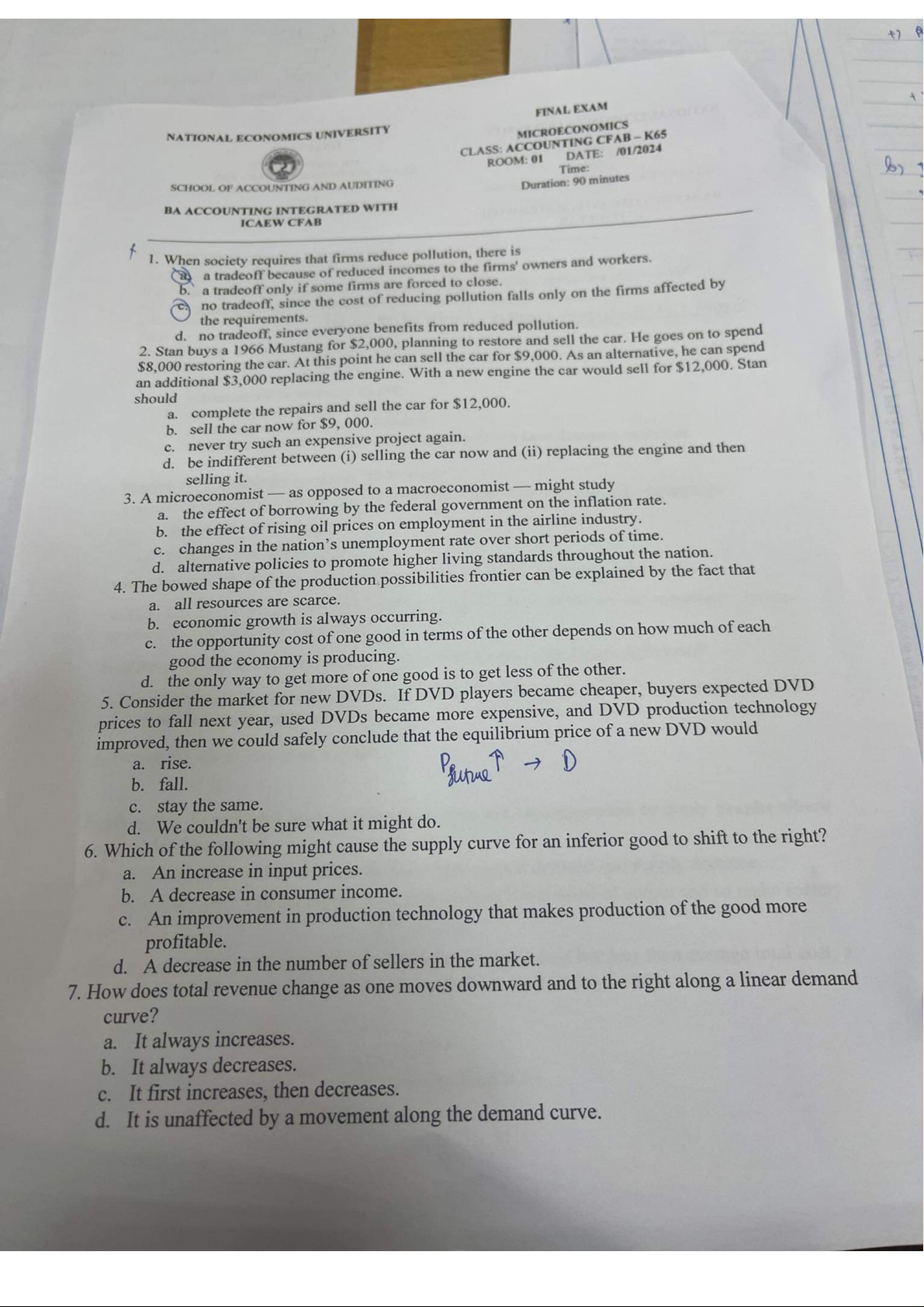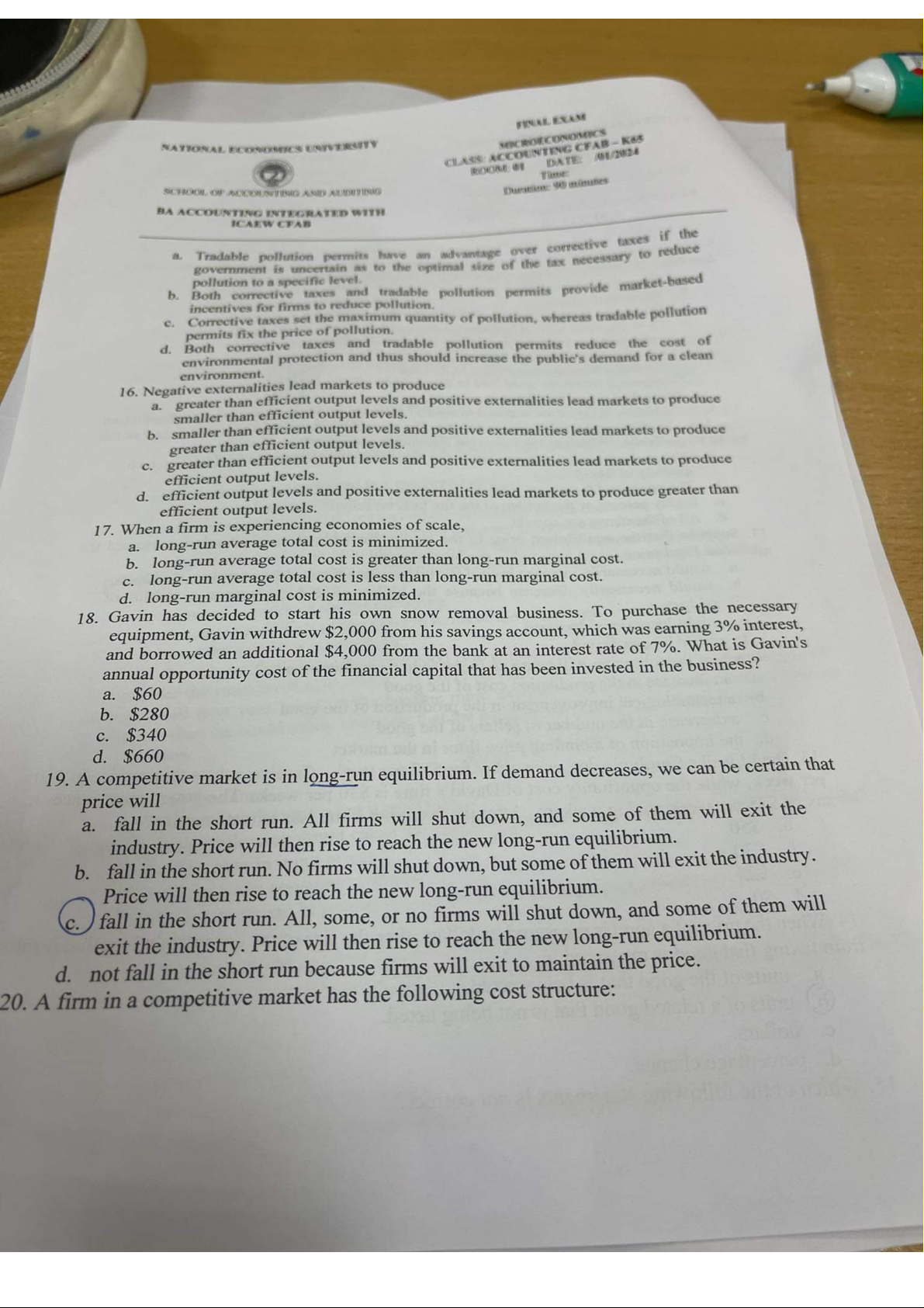 Final Exam Microeconomics | Microeconomics | Trường Đại học Quốc tế, Đại học Quốc gia Thành phố Hồ Chí Minh