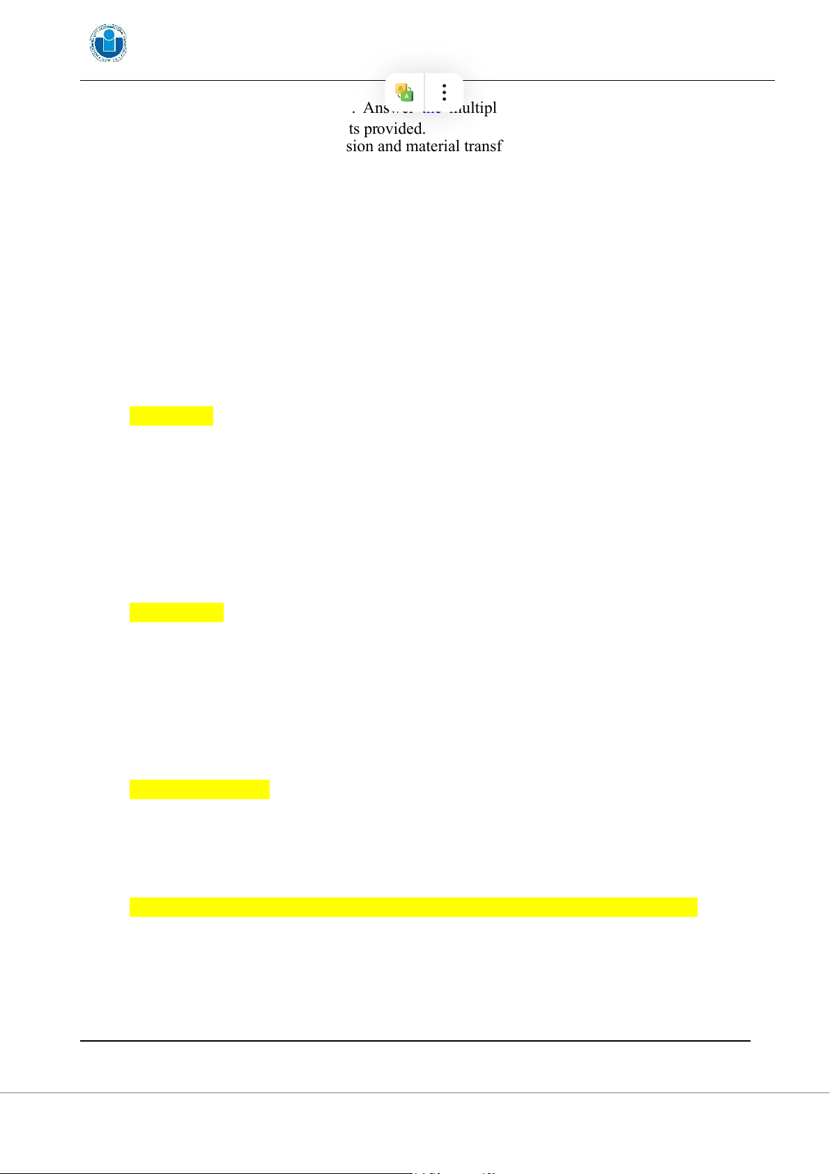 This is an open book examination. Answer the multiple choice questions and do the