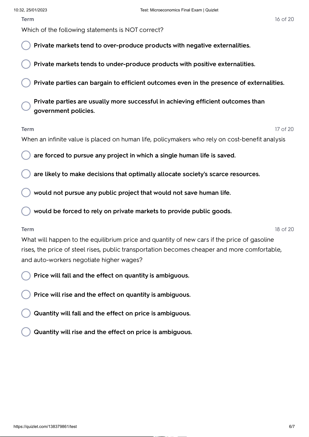 Test: Microeconomics Final Exam | Quizlet Term 19 of 20