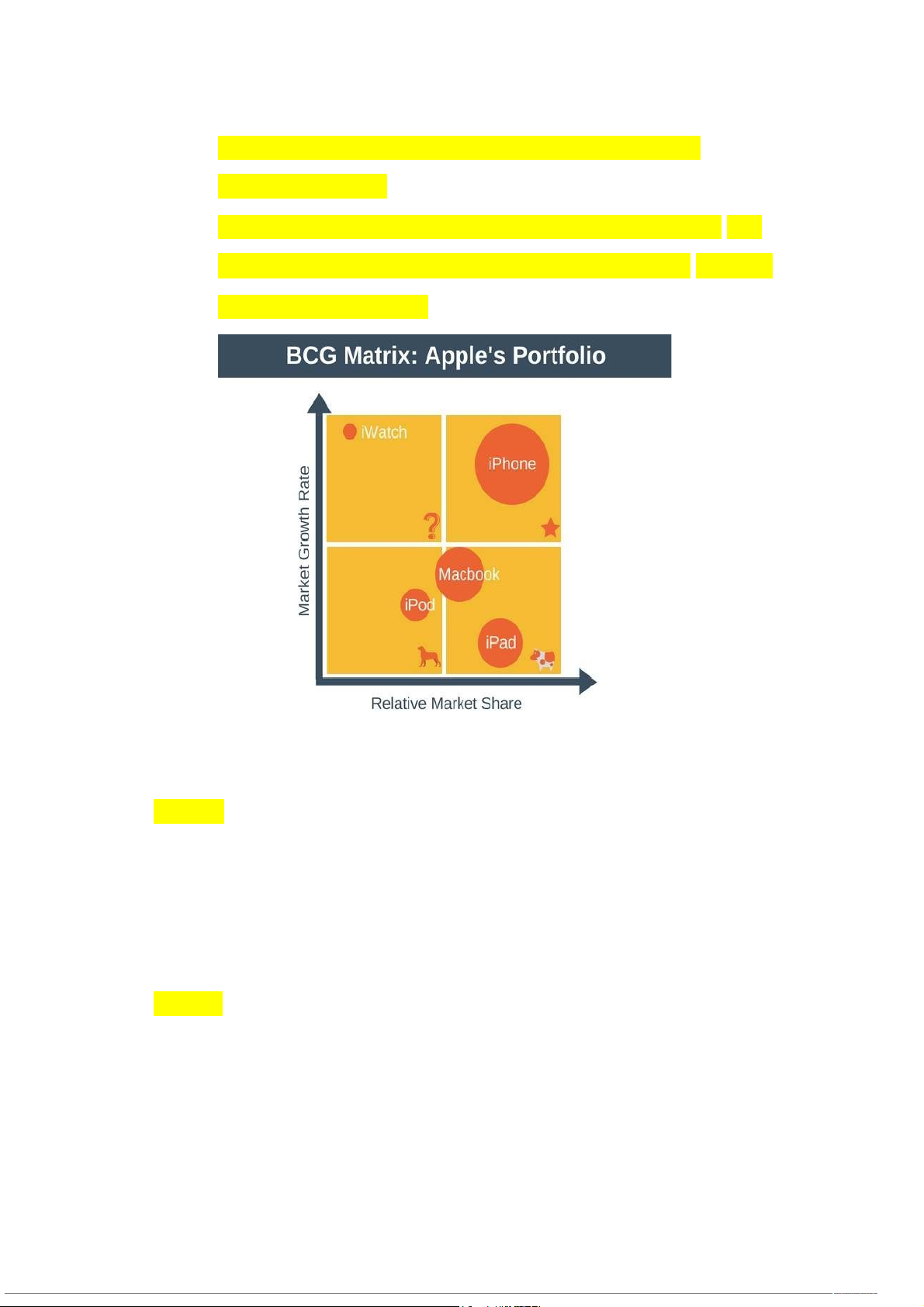 have an advantage in competing and have many opportunities to grow profits and develop in the long term. *Iwatch: These SBUs are relatively low in market share but they are high- growth and very promising industries in profitability and long- term growth. *Ipad, Mac