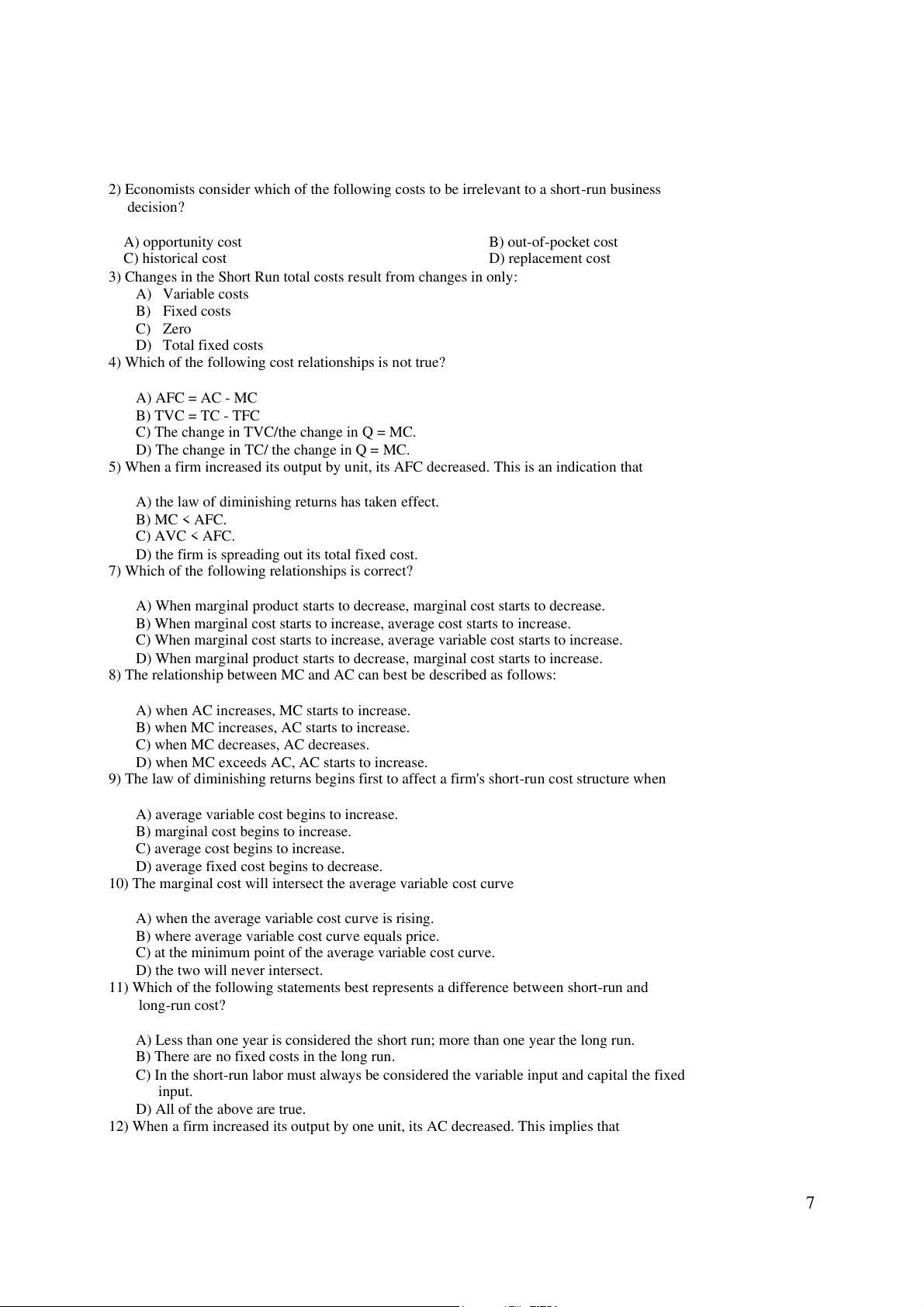 7) Remembering that demand elasticity is defined as the percentage change in quantity divided