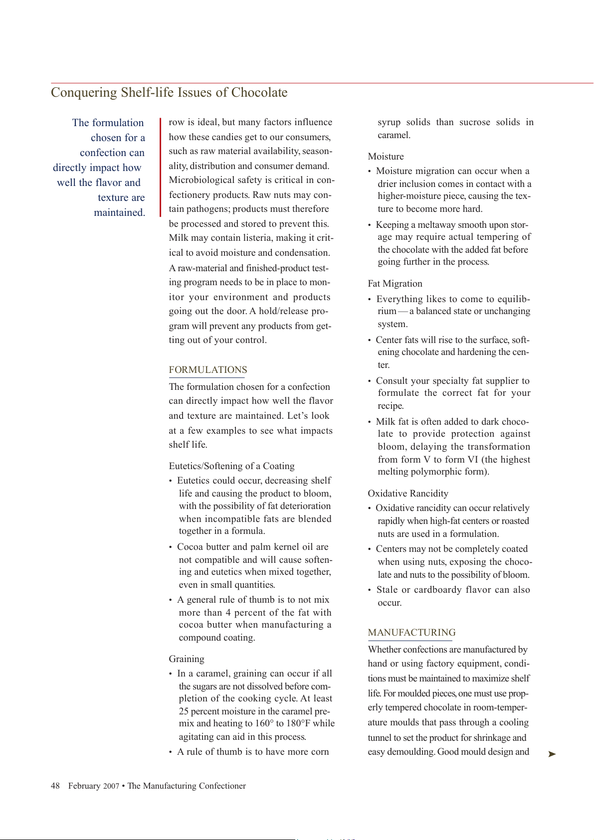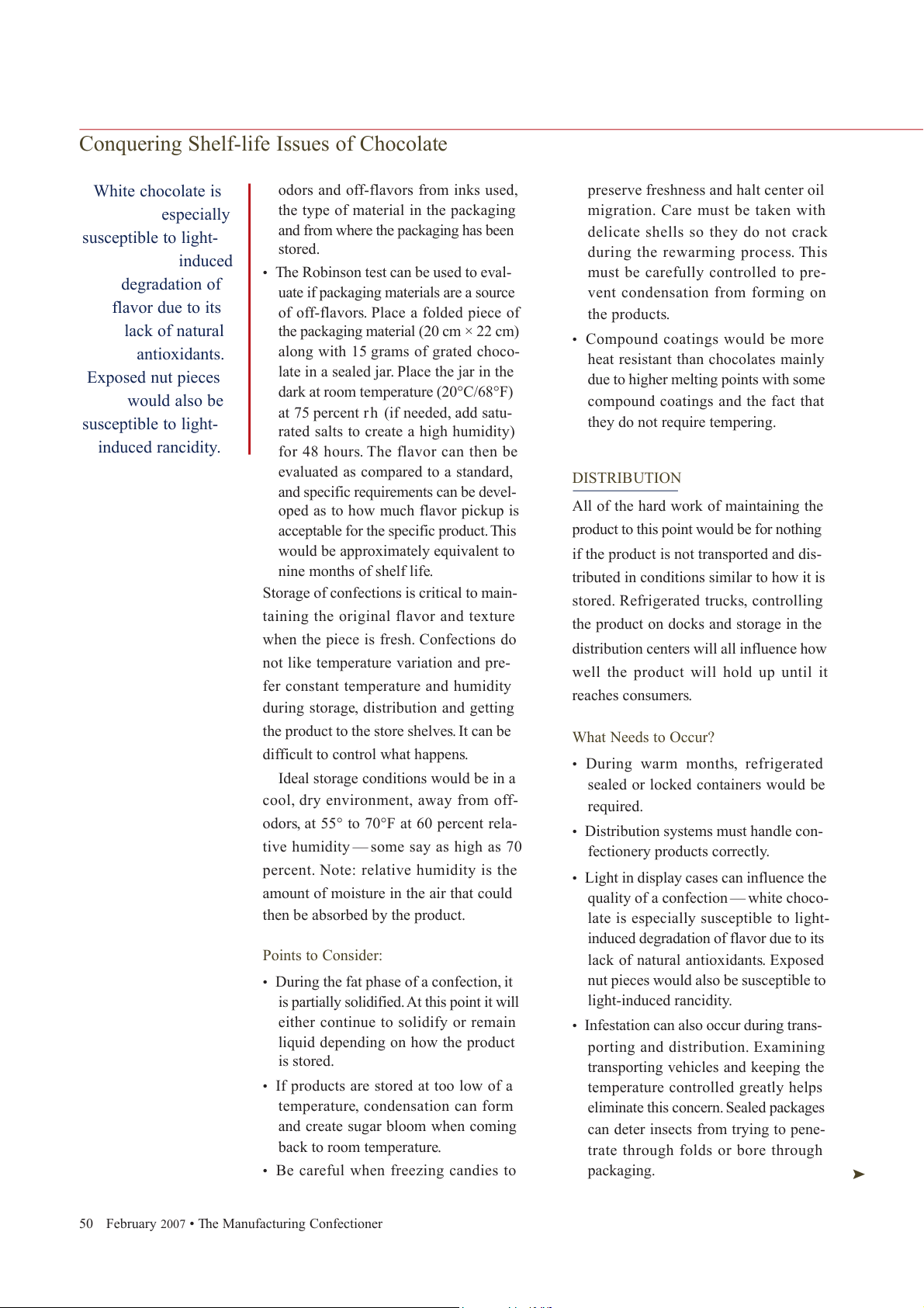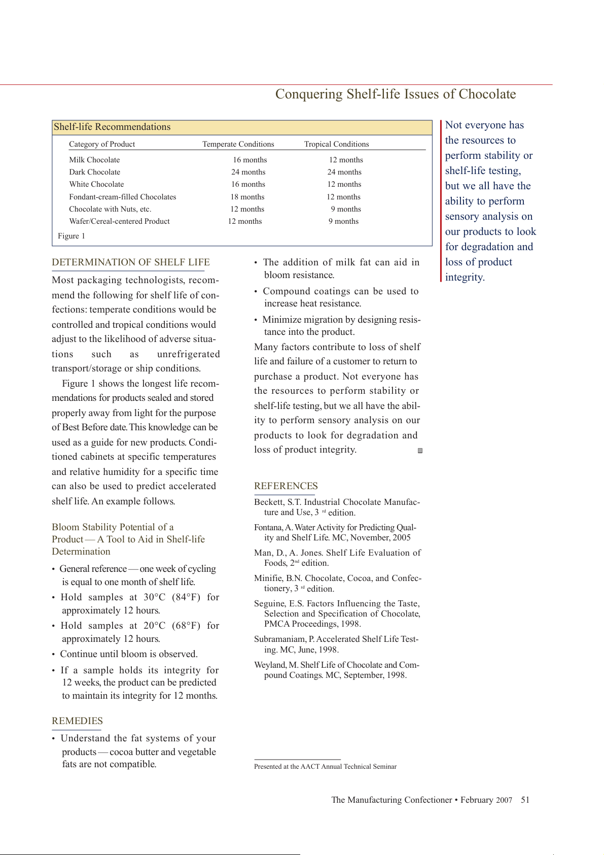 fatty acids.As a result, most chocolate prod- and development at Blommer Chocolate WHAT IS SHELF LIFE?
