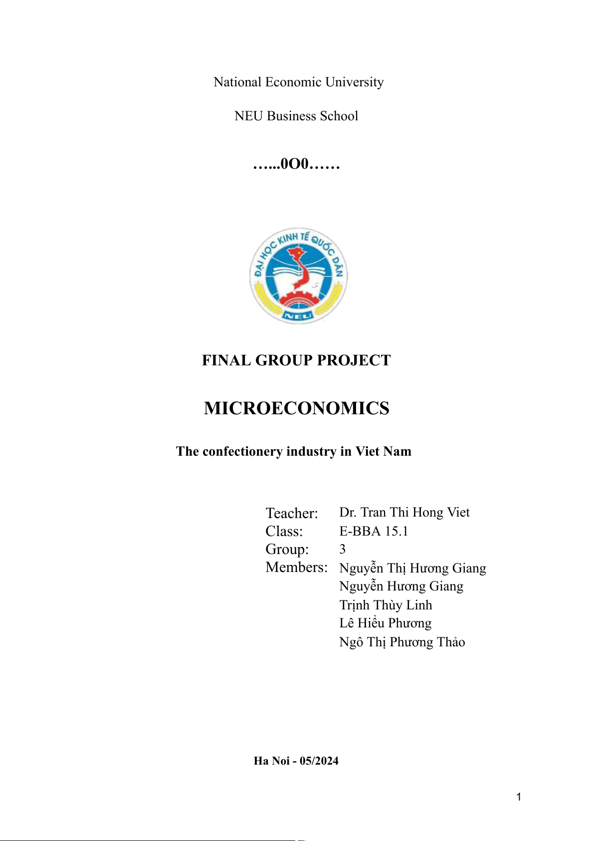 National Economic University NEU Business School …...0O0…… FINAL GROUP PROJECT MICROECONOMICS