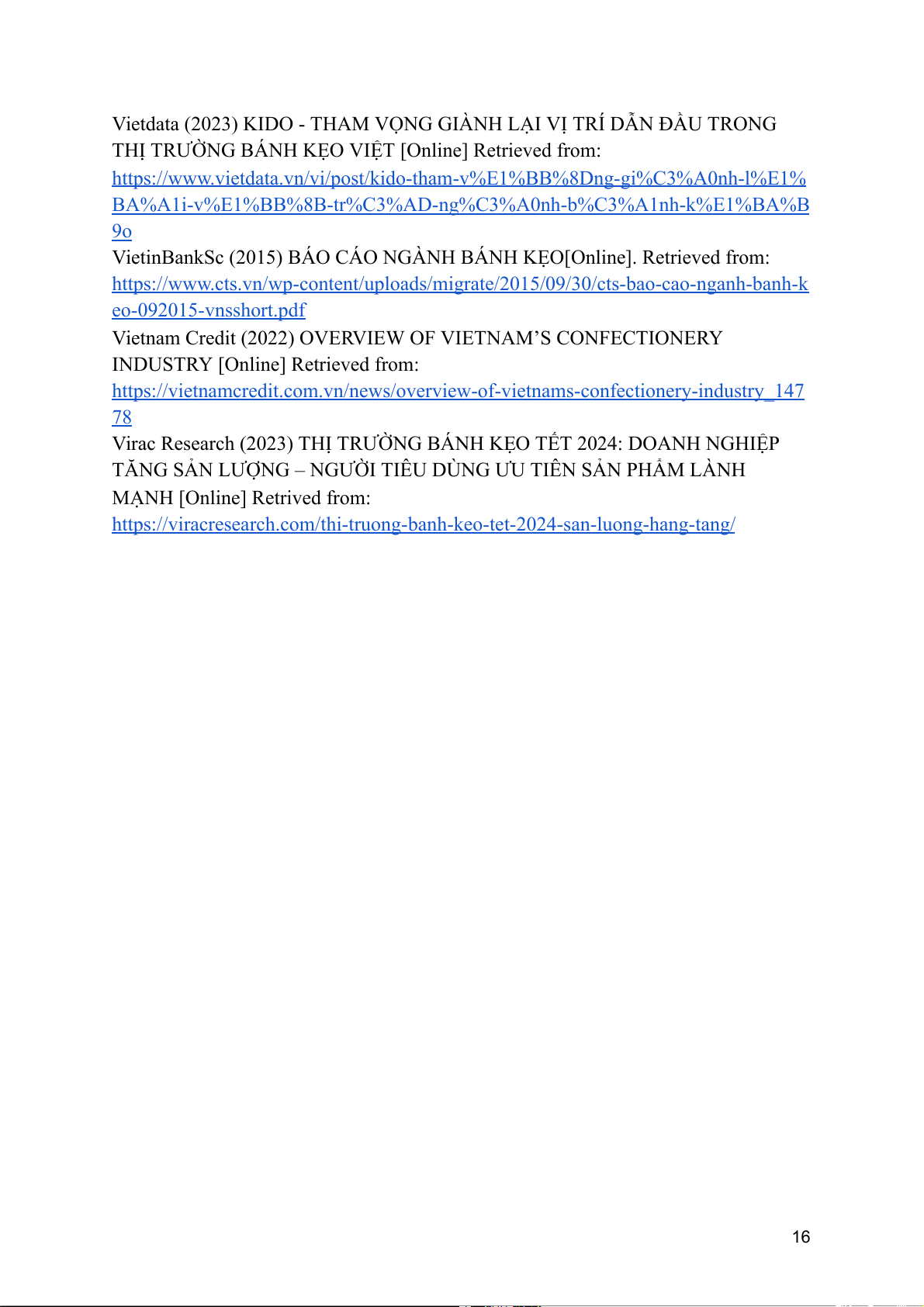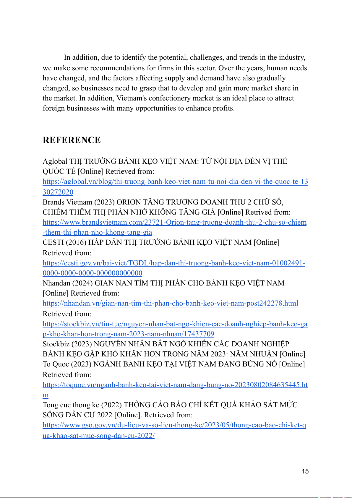 VietinBankSc (2015) BÁO CÁO NGÀNH BÁNH KẸO[Online]. Retrieved from: