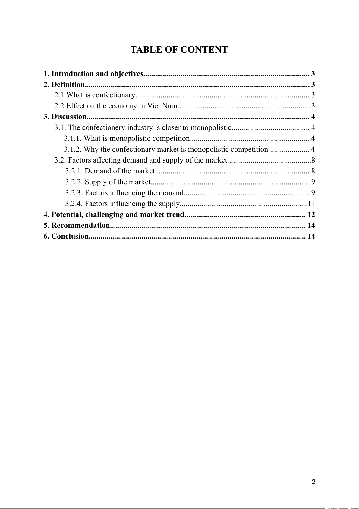 3.1.2. Why the confectionary market is monopolistic competition..................... 4