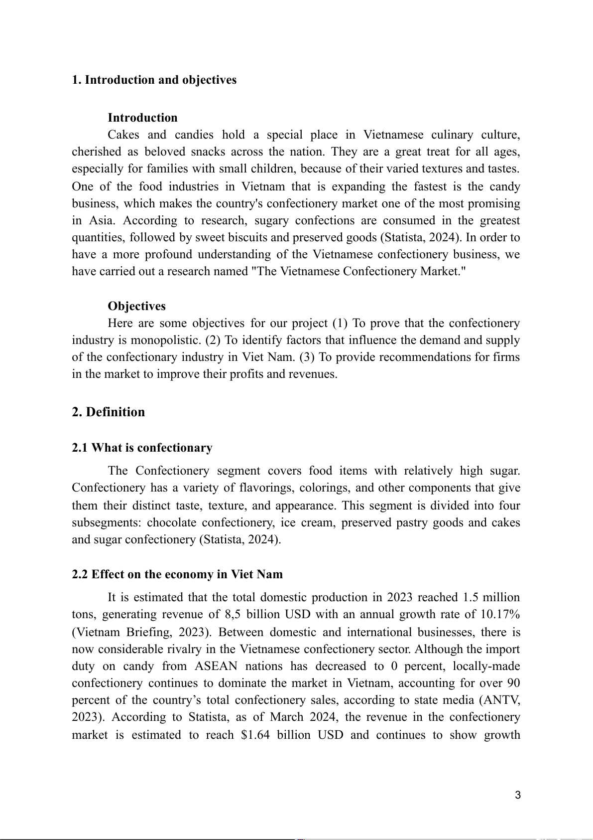 have carried out a research named "The Vietnamese Confectionery Market." Objectives