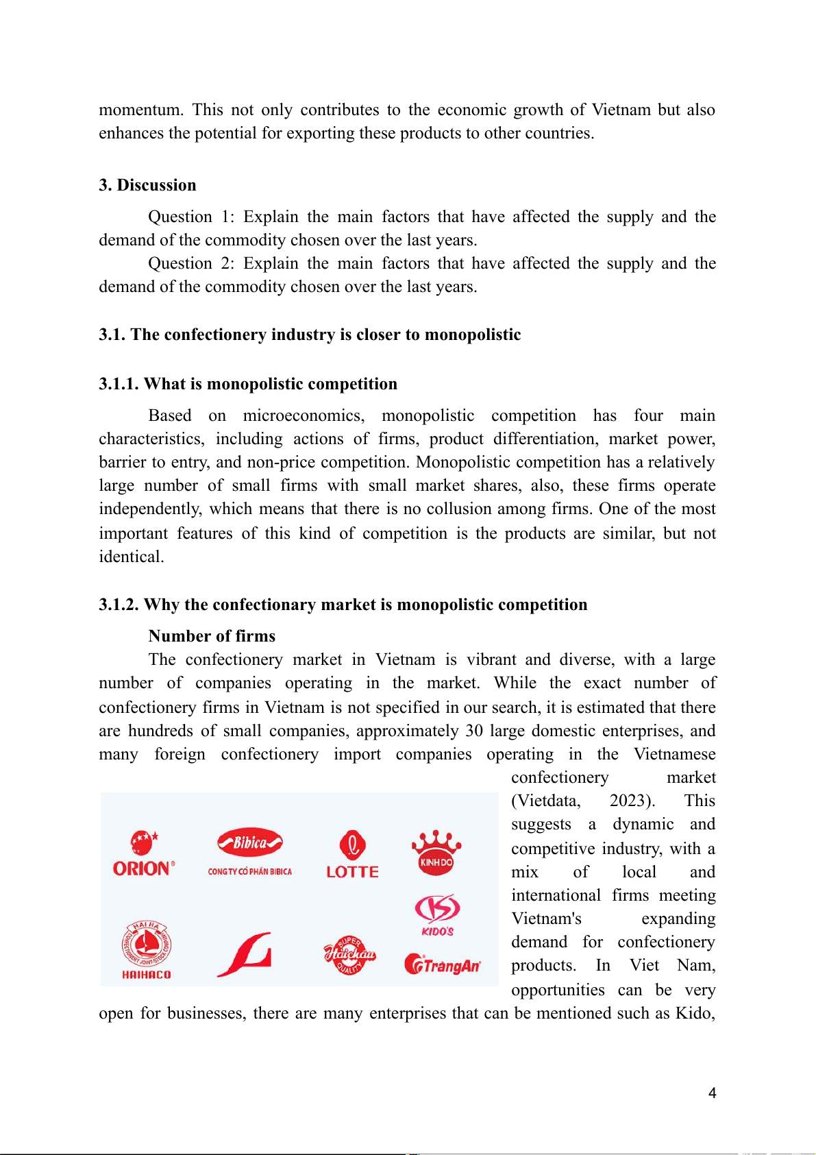 3.1. The confectionery industry is closer to monopolistic