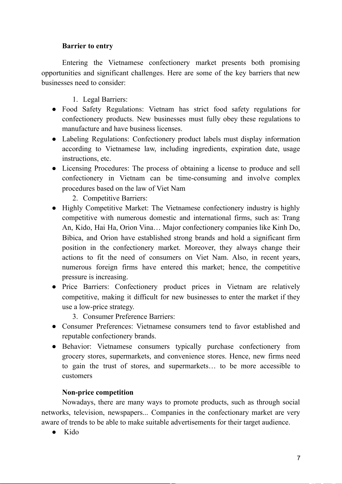 Vietnamese market. Kido has introduced numerous new confectionary goods,