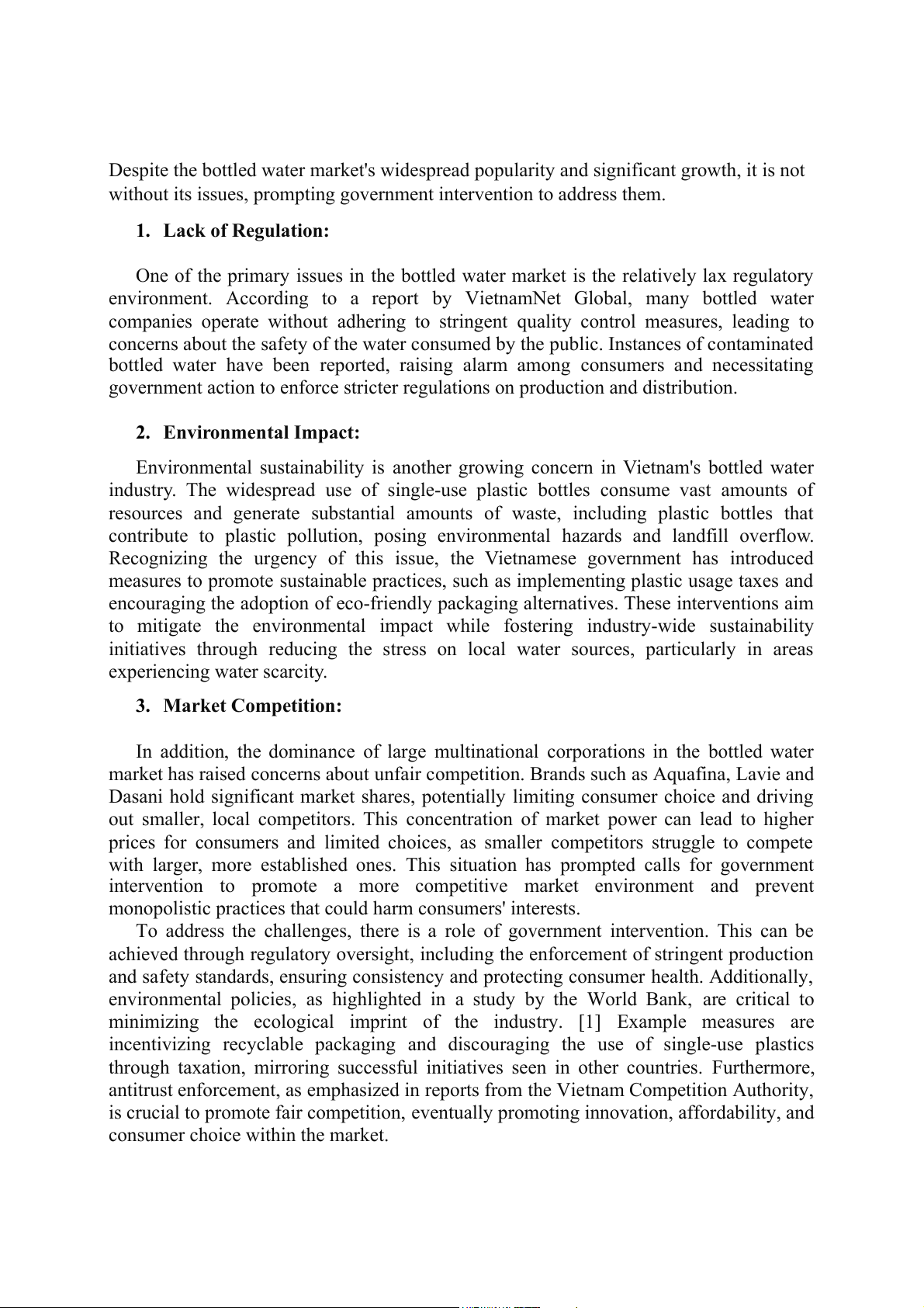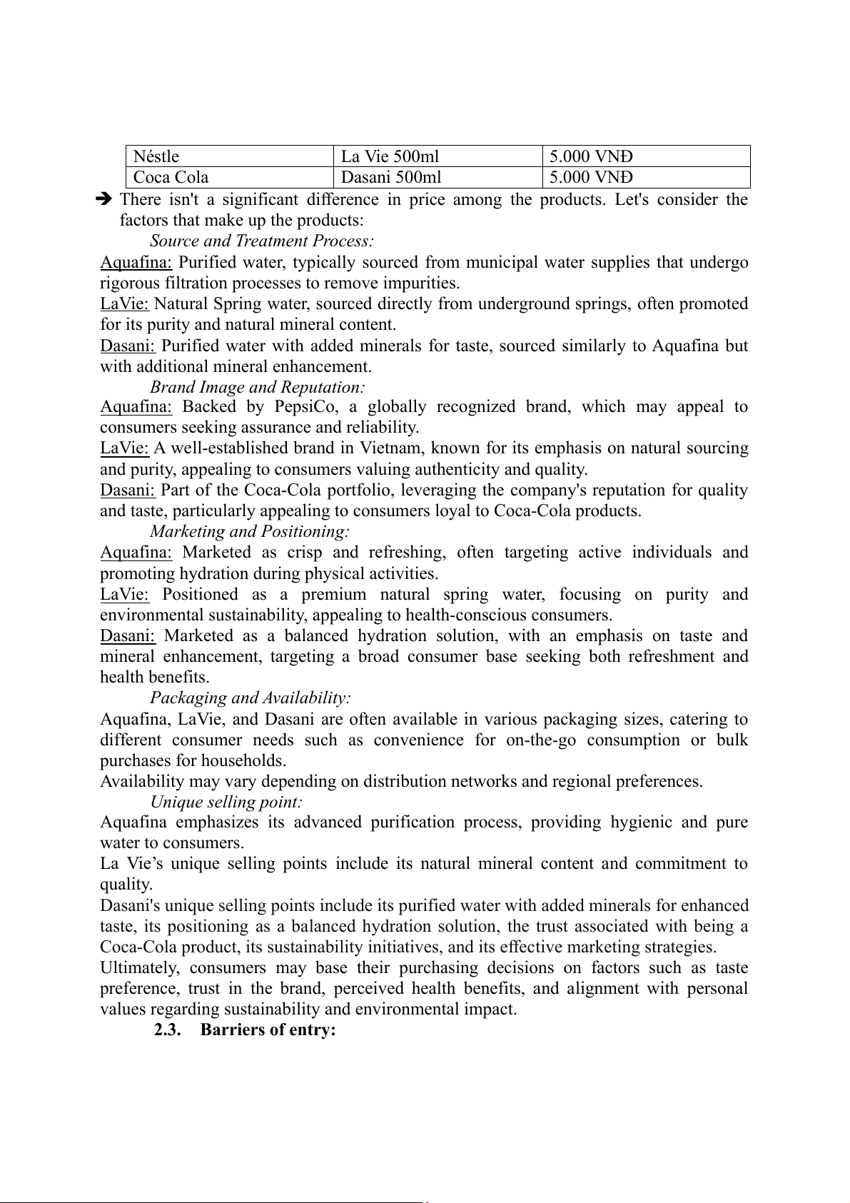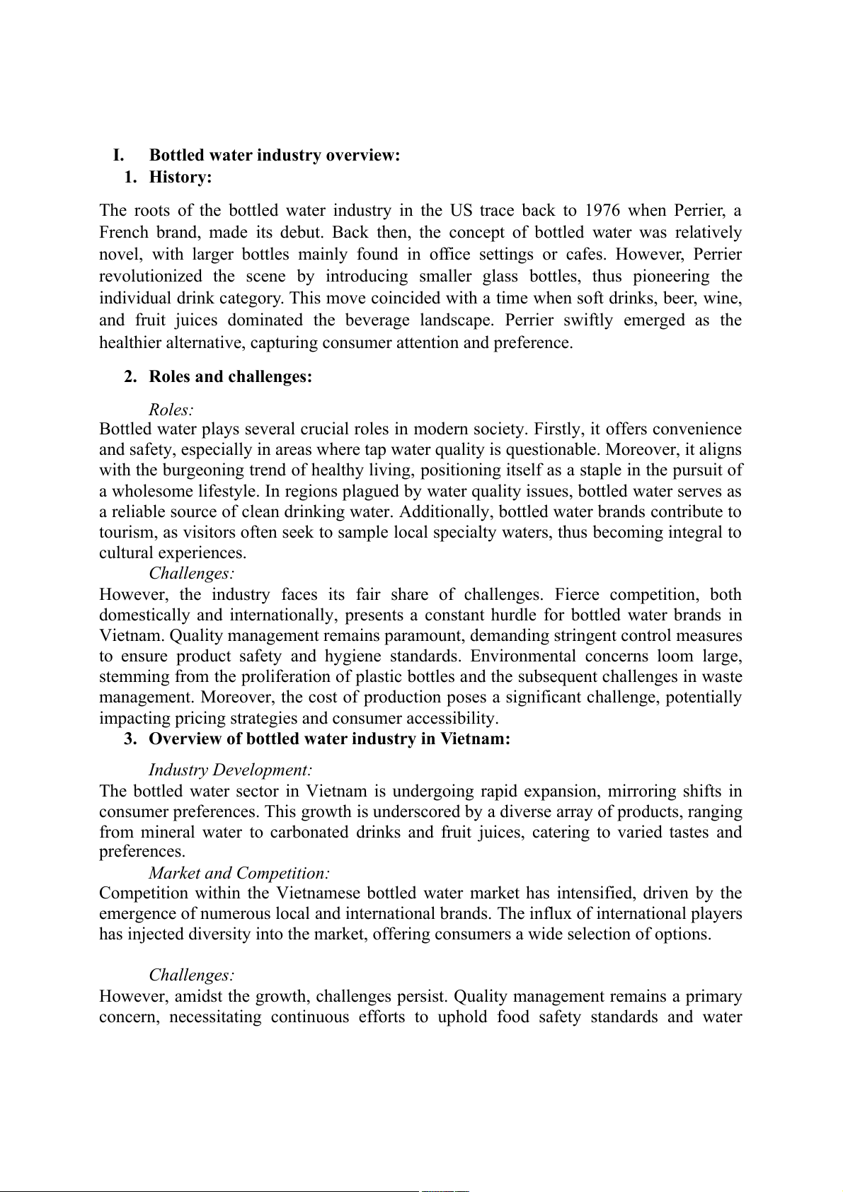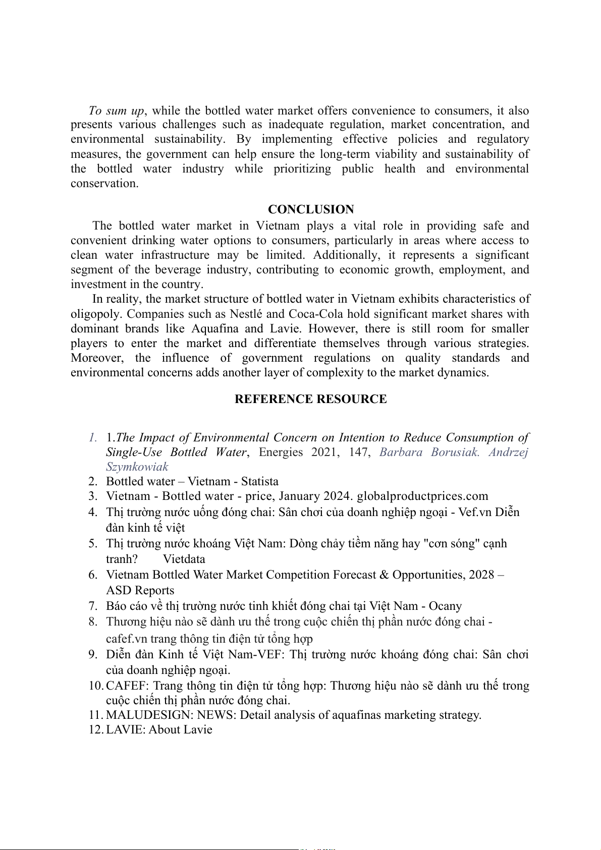 In reality, the market structure of bottled water in Vietnam exhibits characteristics of