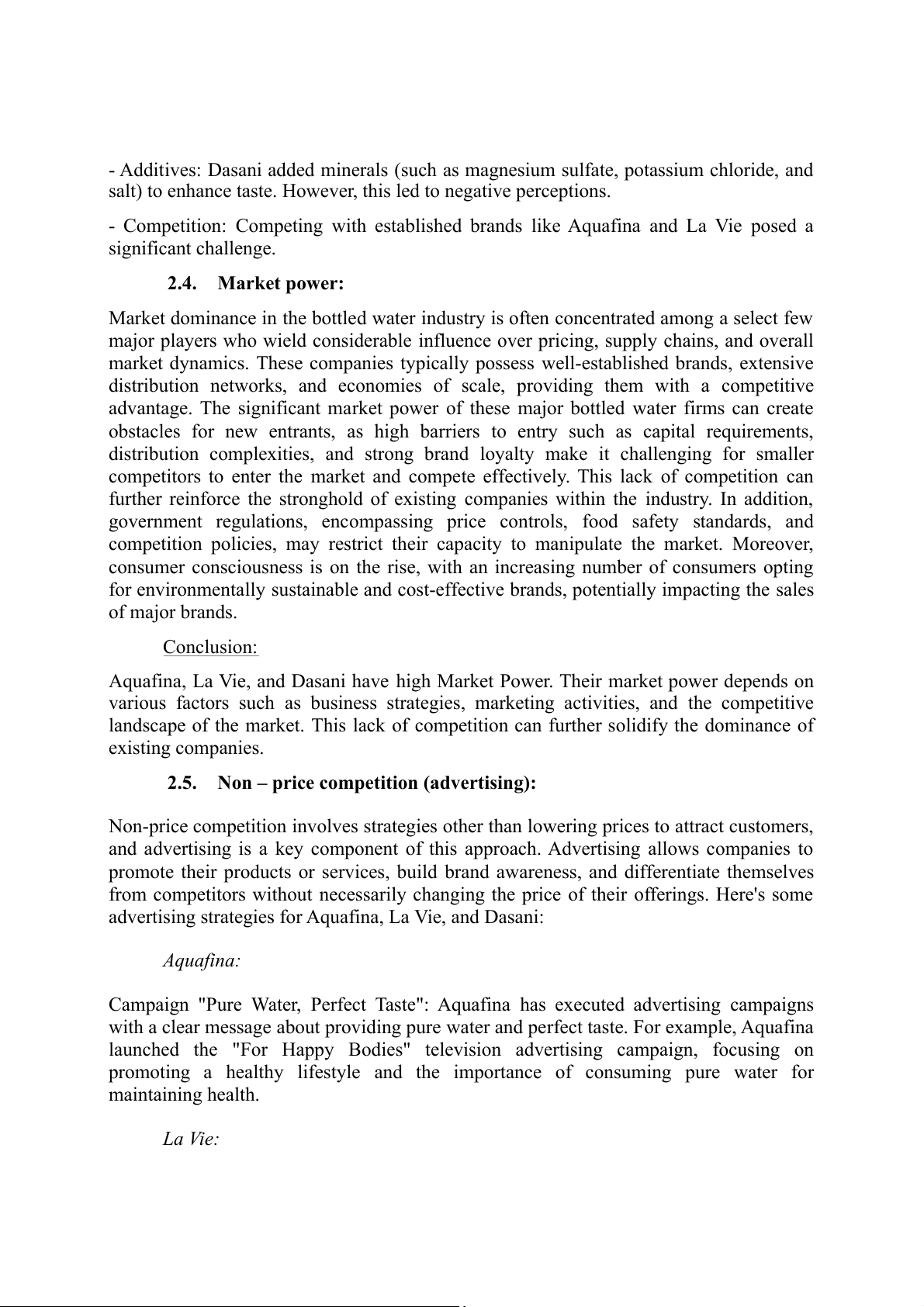 market has raised concerns about unfair competition. Brands such as Aquafina, Lavie and