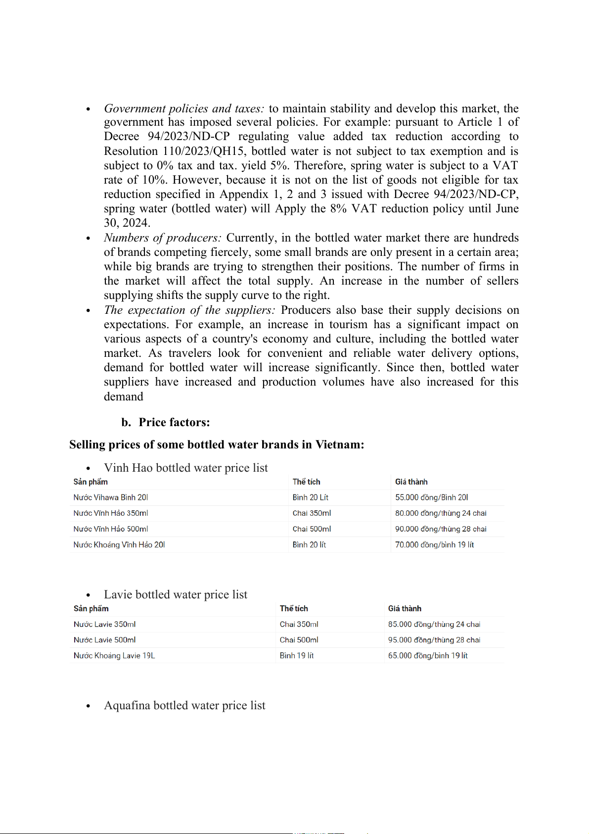 Vietnam also contributes to water demand increase b. Price factors:
