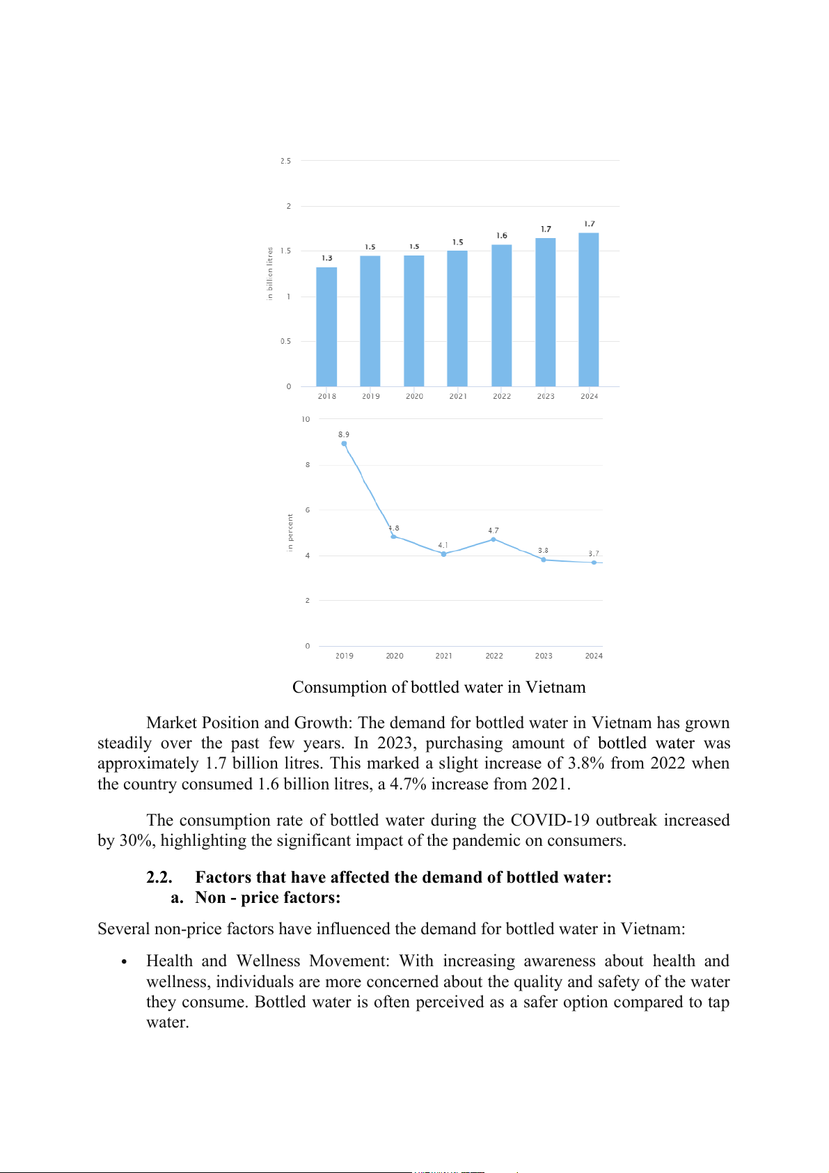 Several non-price factors have influenced the demand for bottled water in Vietnam: