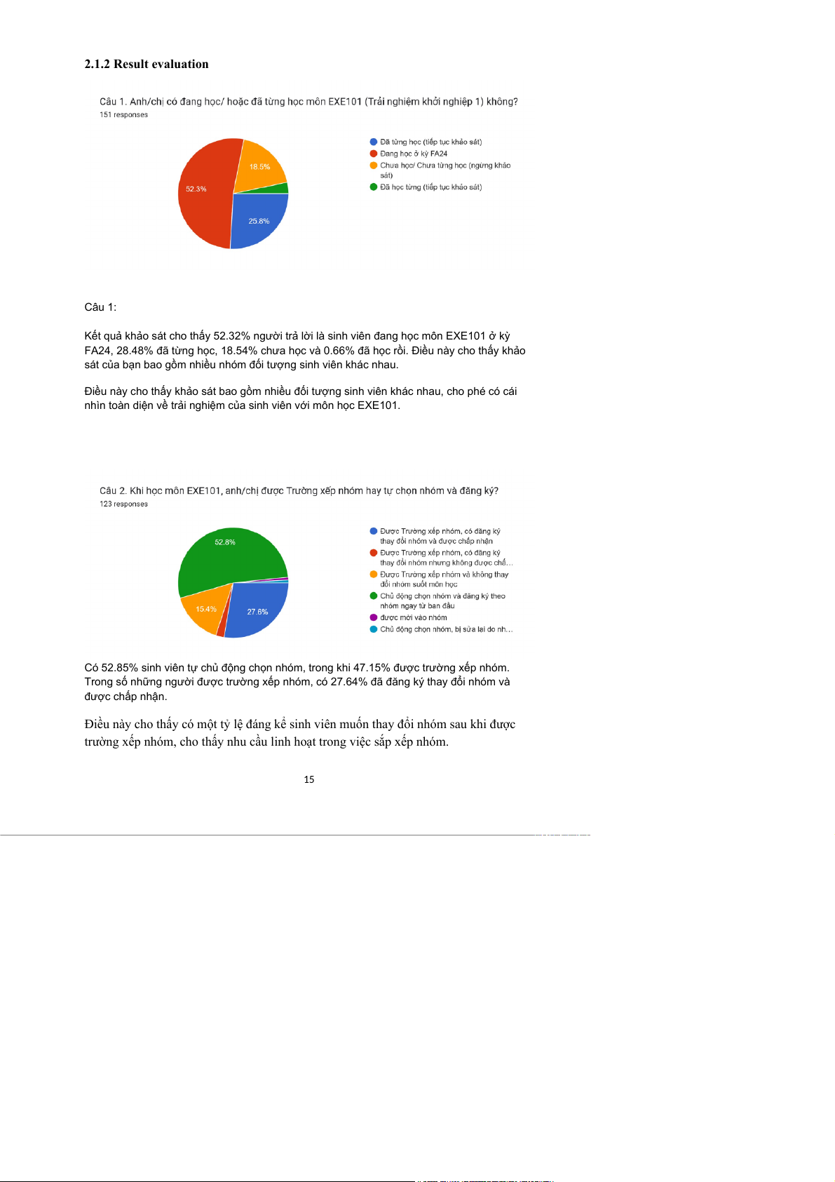 ● Số lượng người sử dụng để phân tích: 123 sinh viên (sau khi loại bỏ các phản hồi không hợp lệ). 14 2.1.2 Result evaluation Câu 1: