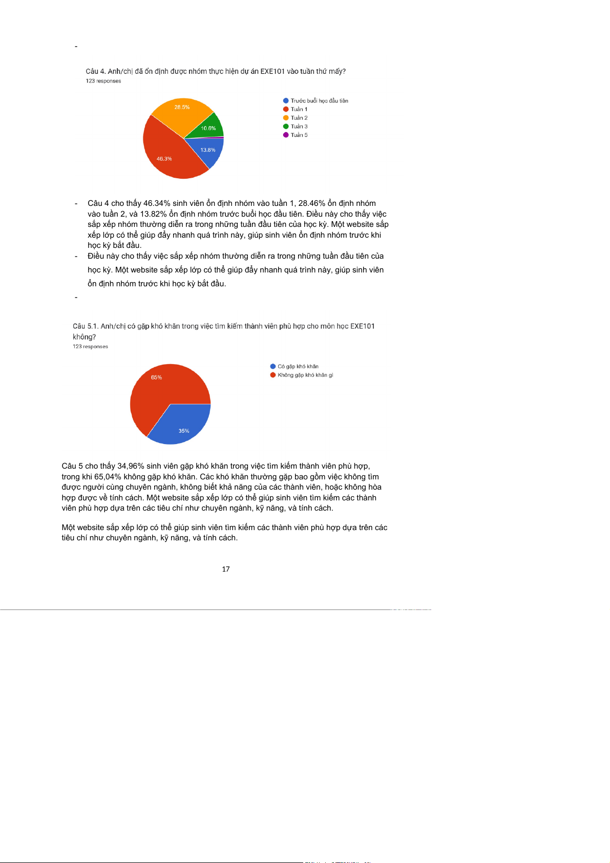 Câu 5 cho thấy 34,96% sinh viên gặp khó khăn trong việc tìm kiếm thành viên phù hợp,