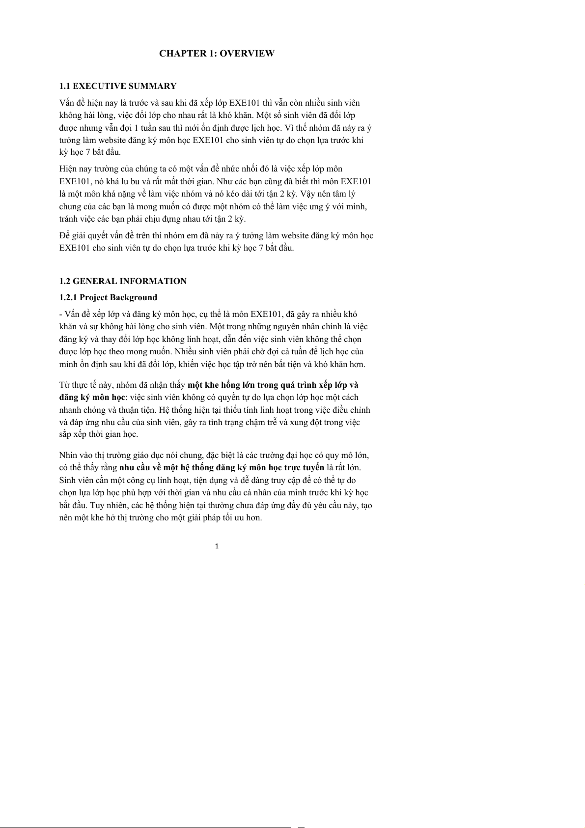 EXE101 cho sinh viên tự do chọn lựa trước khi kỳ học 7 bắt đầu. 1.2 GENERAL INFORMATION