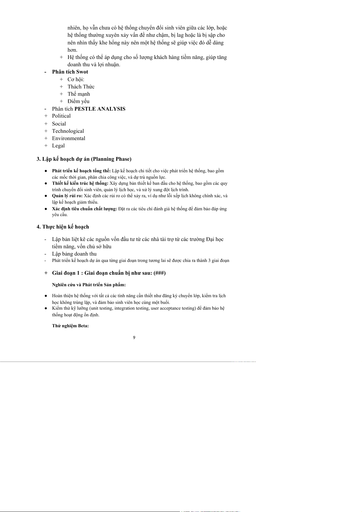 nhu cầu của các nhóm người dùng khác nhau (sinh viên, giảng viên, nhân viên phòng đào tạo).