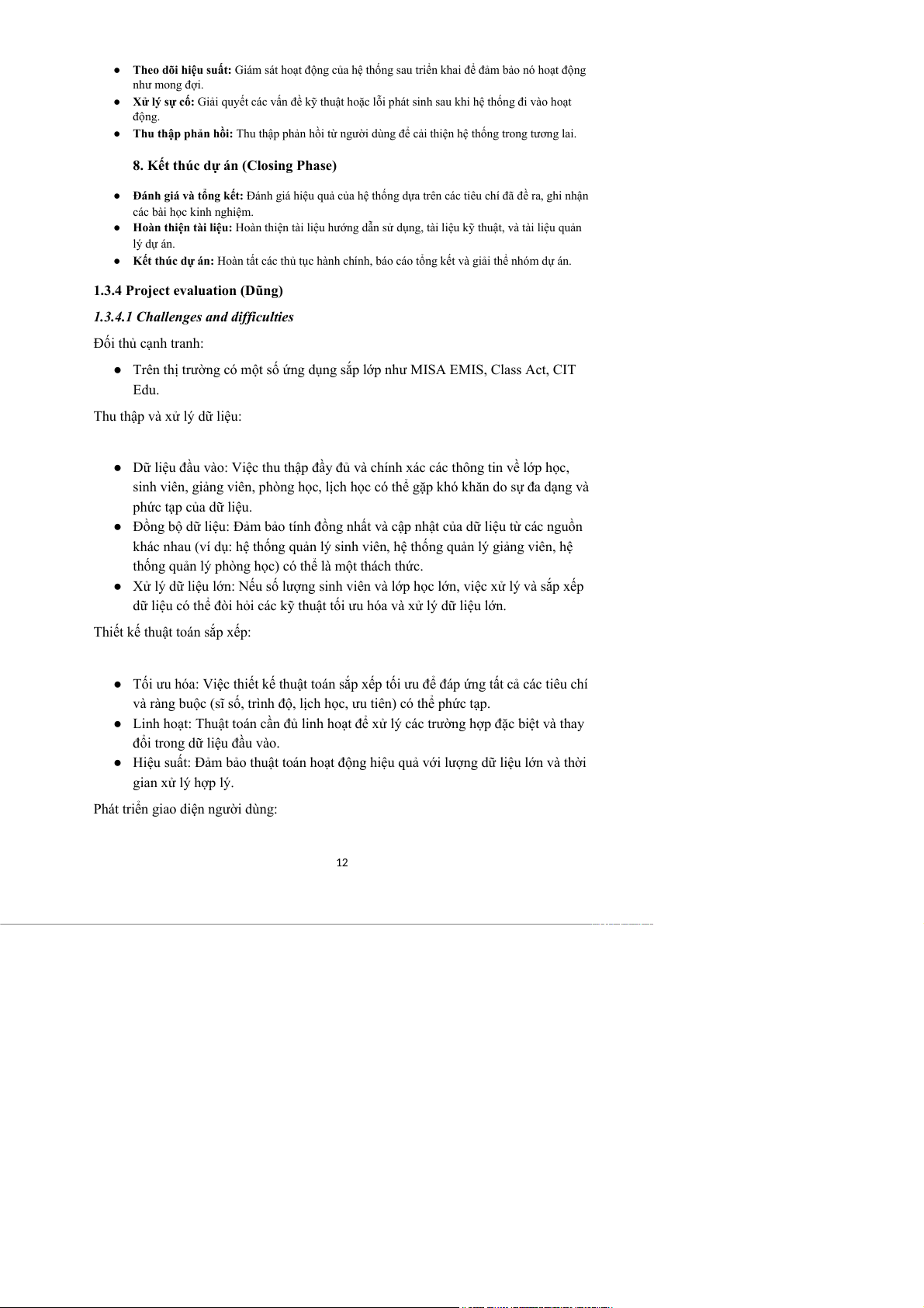 ● Dữ liệu đầu vào: Việc thu thập đầy đủ và chính xác các thông tin về lớp học,