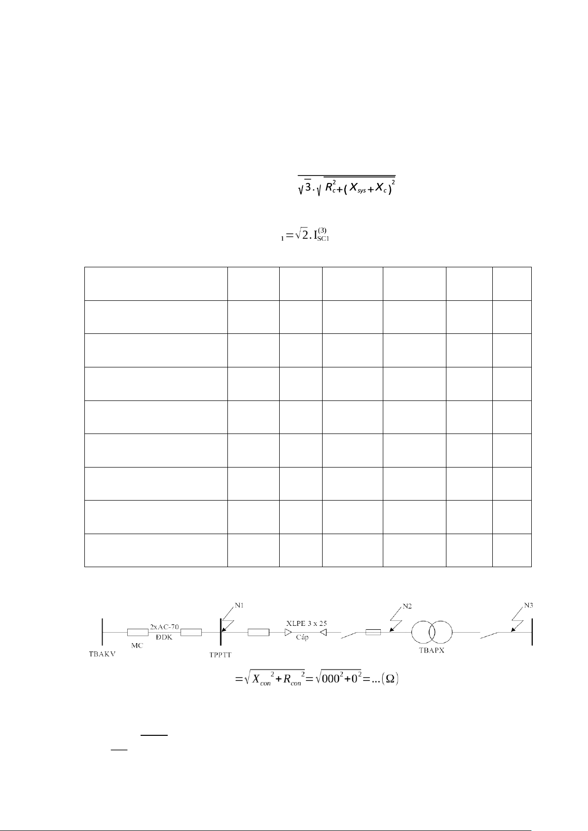 X=X sys+Xcon=Xsys+xo .l=3.376+6.045=9.421(Ω) Short-circuit current at N: I(SC3)